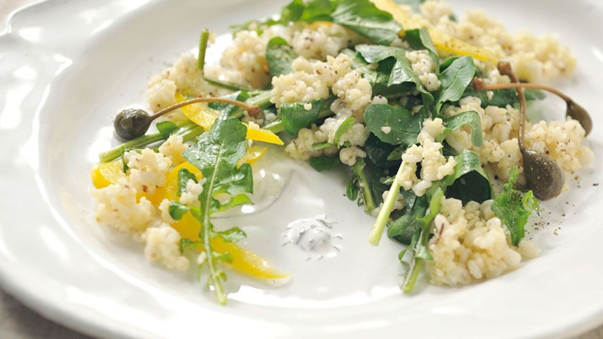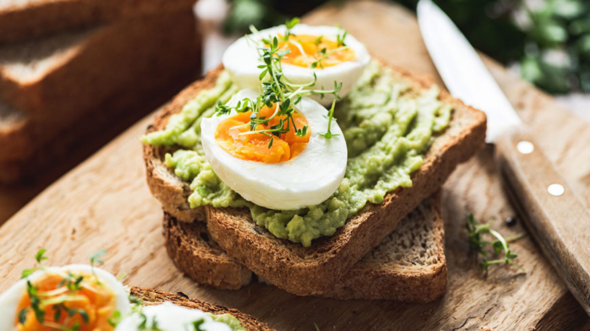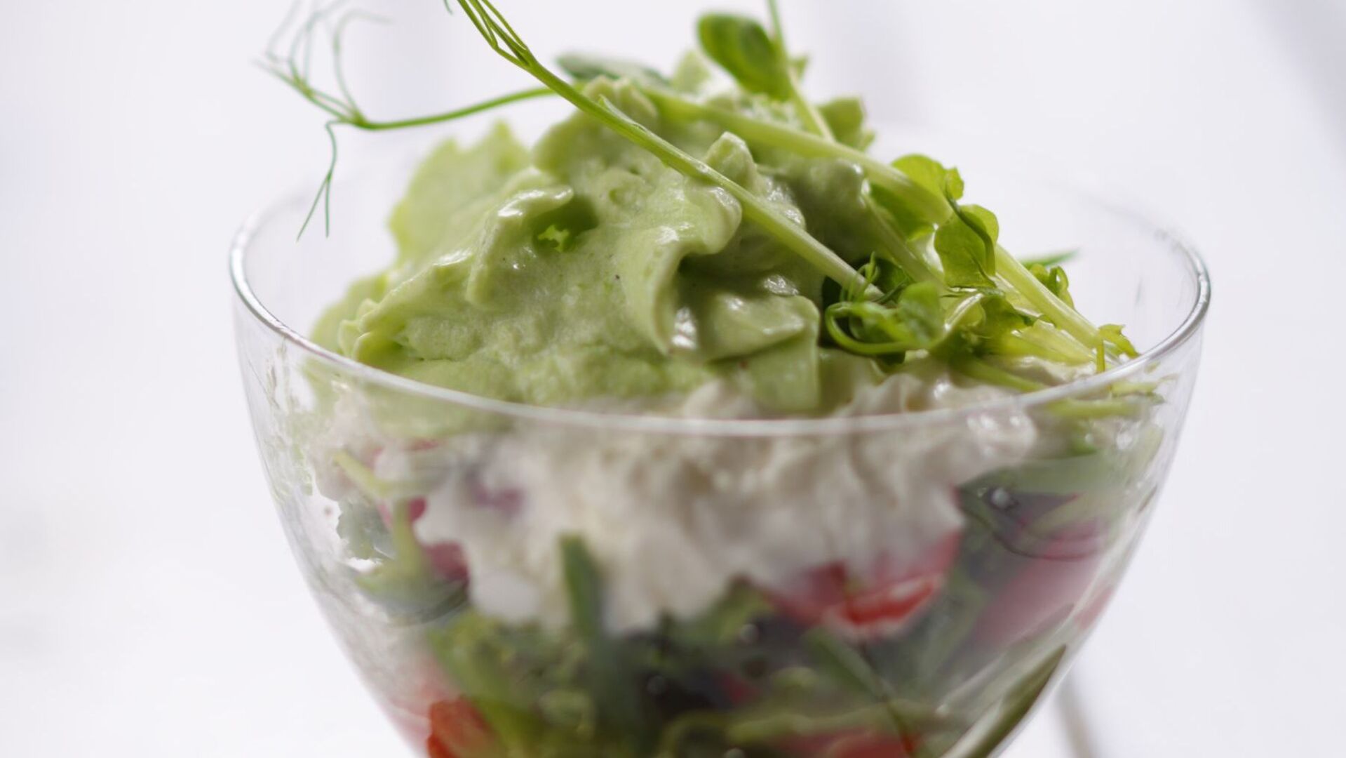 Spinat-Wildkräuter-Salat mit gebackenem Ei und Bärlauchschaum