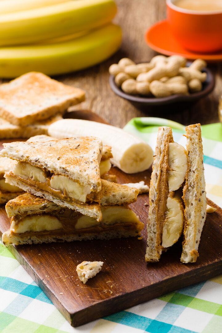 Zunächst toasten Sie die Brotscheiben, braten währenddessen den Bacon knusprig an und schneiden die Bananen in Scheiben. Bestreichen Sie das Toastbrot dick mit Erdnussbutter und schichten Sie die Bananenscheiben und den Speck darüber. Anschließend frittieren Sie den Toast mit der Butter von beiden Seiten in der Pfanne, bis die Erdnussbutter geschmolzen ist. Benannt ist das super leckere Sandwich übrigens nach der Rock'n'Roll-Legende Elvis, da es sein Leibgericht gewesen sein soll.