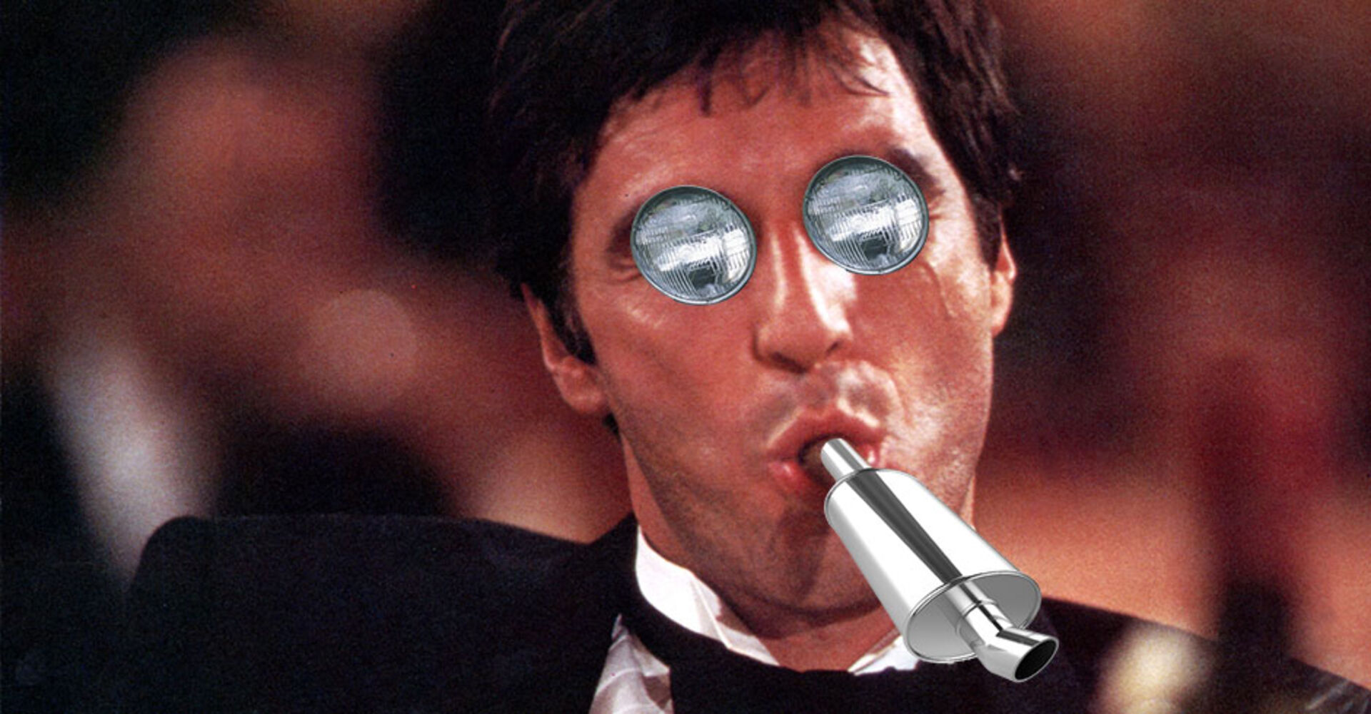 Oben im Bild sehen Sie unsere Vorstellung von Al Pacino in seiner Rolle als Mann-Auto-Hybrid, der so viel produktiver im Drogenhandel ist und schneller vor Feinden fliehen kann. Oscar-verdächtig.