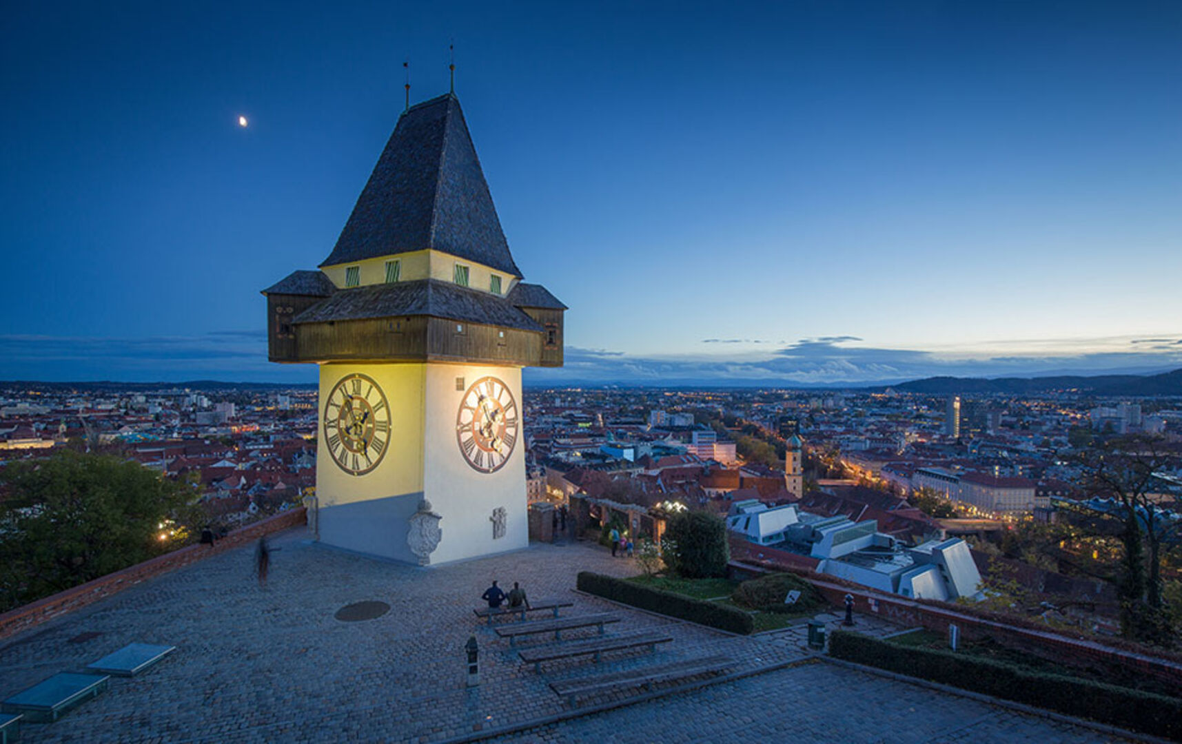 Mehr als 800.000 Menschen wollen den Grazer Schloßberg erklimmen und 260 Stufen steigen oder sie nehmen doch lieber die gemütliche Schloßbergbahn. Ein ganz besonderes Highlight ist auch der gläserne Lift, mit dem man in einer halben Minute am Ziel ist. Egal, für welchen Weg man sich entscheidet, die Aussicht am Uhrturm ist grandios.