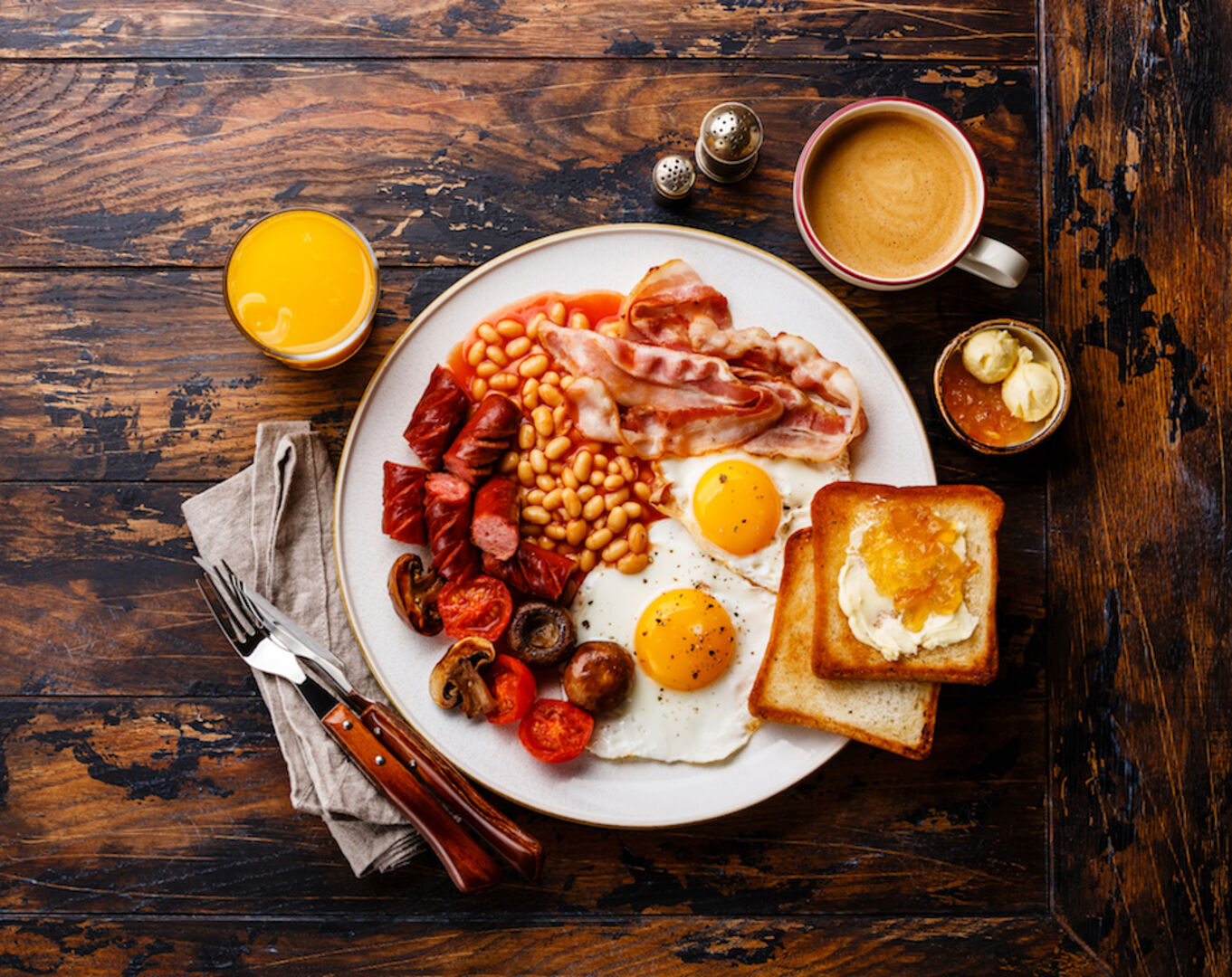 Wer sagt, das ein Frühstück aus Kornspitz mit Marmelade bestehen muss? Dank den Engländern kennen wir auch hierzulande das deftige englische Frühstück. Ganz besonders lecker sind dabei die Baked Beans. Dazu werden Bohnen mit Tomatensauce im Ofen gebacken. Glücklicherweise kann man fertige Baked Beans ganz praktisch in der Dose kaufen, sie waren eines der ersten Gerichte überhaupt, das in Dosen abgefüllt wurde. Aber auch was Gesundes kommt auf den Tisch (nein, Toast mit Orangenmarmelade ist nicht gemeint). Die Rede ist von Porridge. Der wohlschmeckende Haferbrei stammt urprünglich aus Schottland. Traditionell werden dort die Haferflocken nur mit Salz in Wasser gekocht, die Milch kommt separat auf den Tisch. Wer mag, kann den Löffel Haferbrei dann darin eintunken.