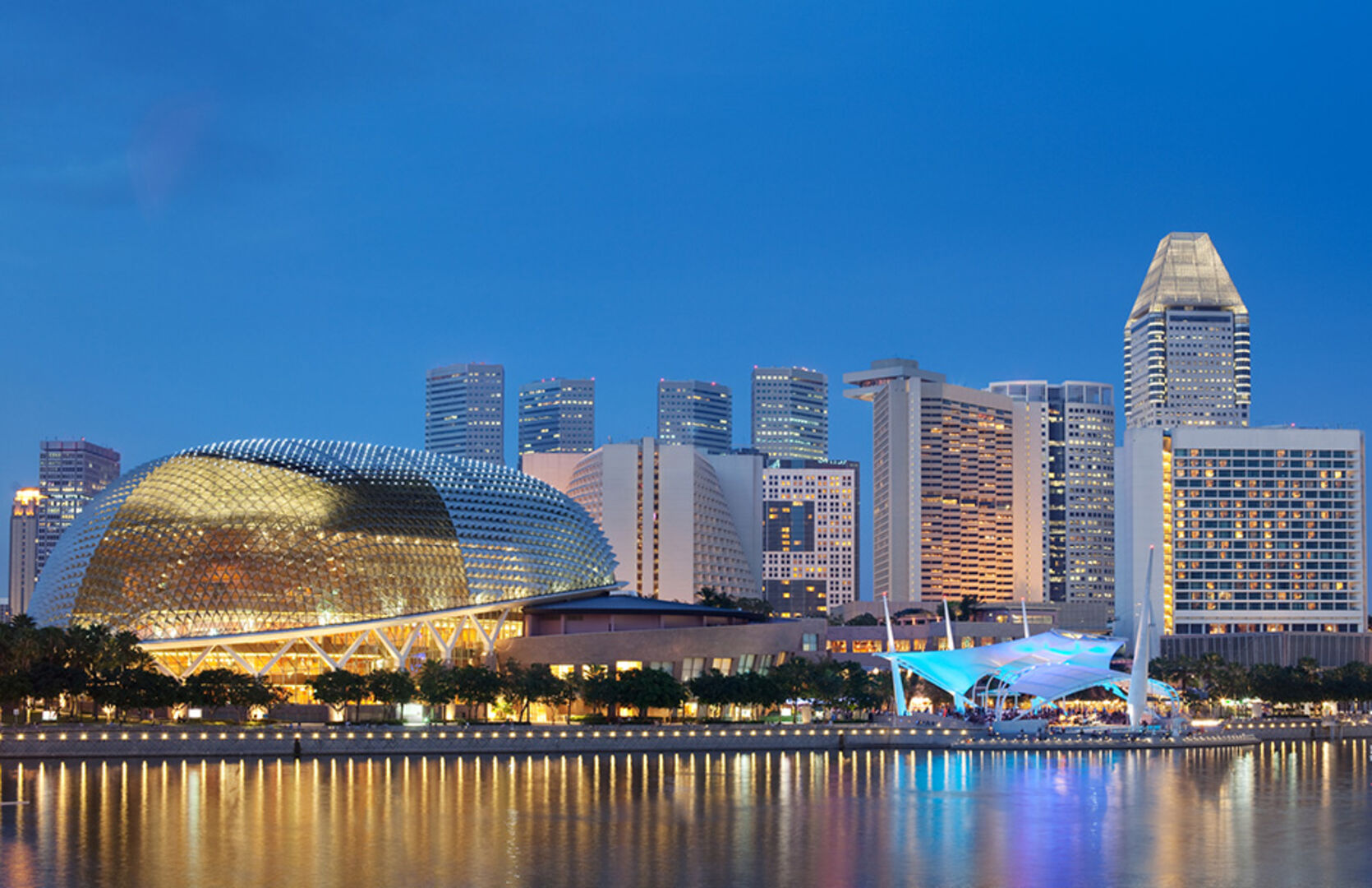Das Opernhaus in Singapur besteht aus zwei auffälligen, runden Gebäuden, die von mehr als 7.000 dreieckigen Aluminiumscheiben verkleidet sind…