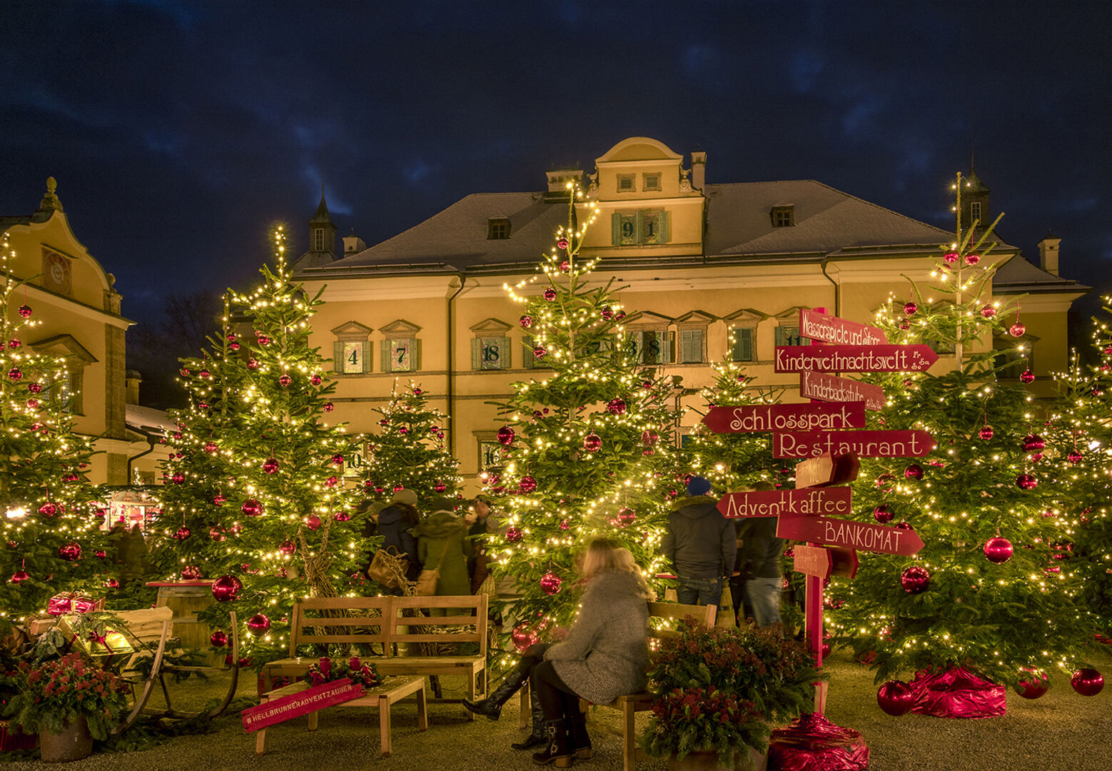Eine märchenhafte Adventkulisse bietet auch das Schloss Hellbrunn. Seit dem 21. November versetzt die Vorweihnachtsstimmung jeden Besucher in festliche Laune. Genießen Sie süße Lebkuchen, kreative Punschkreationen und spazieren Sie dabei durch den aus über 700 Nadelbäumen geschmückten Märchenwald. Programmhighlights für Kinder sind das Kasperltheater, die sonntäglichen Zaubervorstellungen und der Streichelzoo. Die Wasserspiele Hellbrunn sind ebenfalls speziell für den Advent in Szene gesetzt.