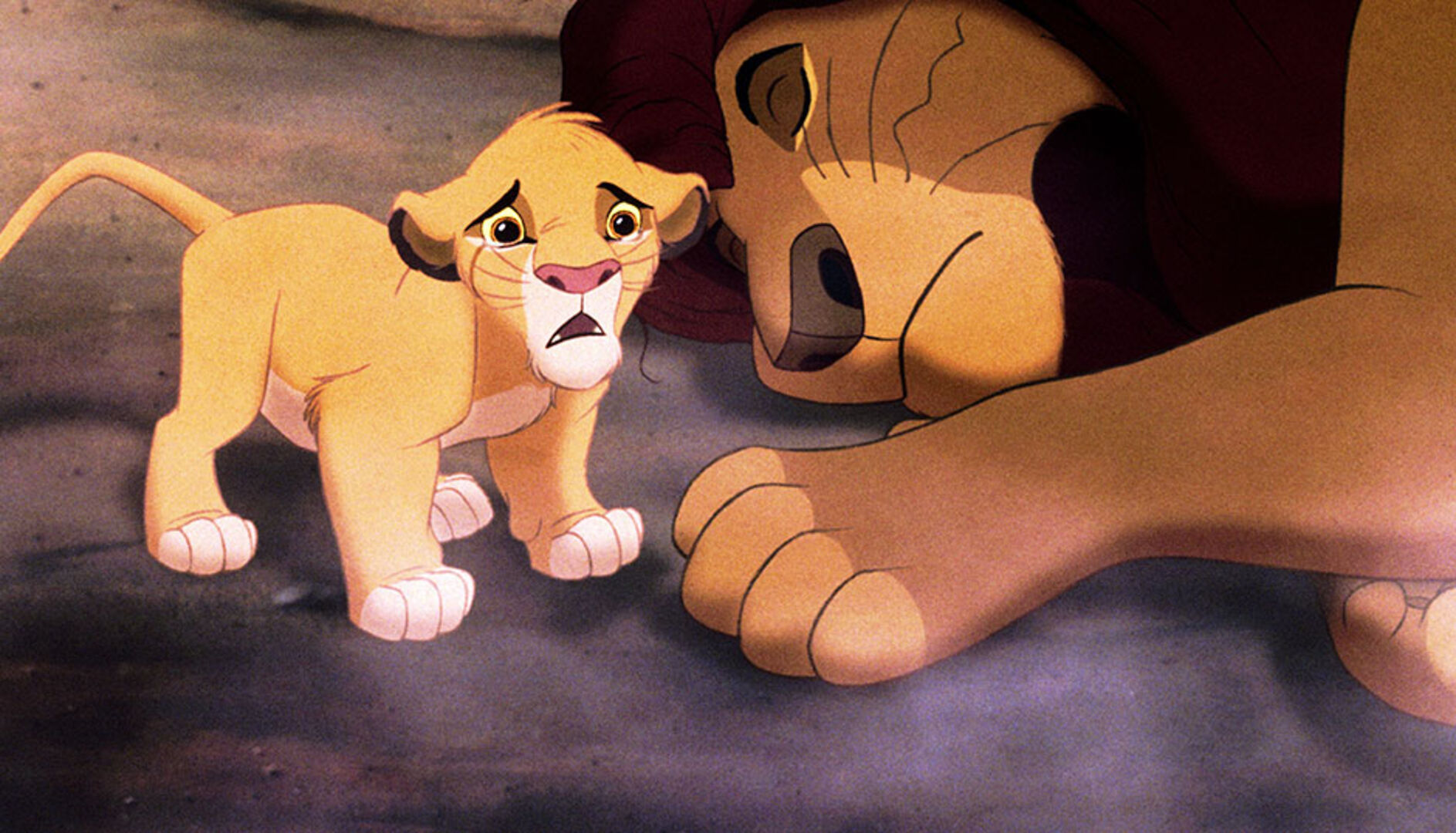 Der Tod: In einem blutigen Kampf lässt Scar seinen Bruder von einem Felsen in den Tod stürzen. Zurück bleibt der kleine ahnungslose Simba.