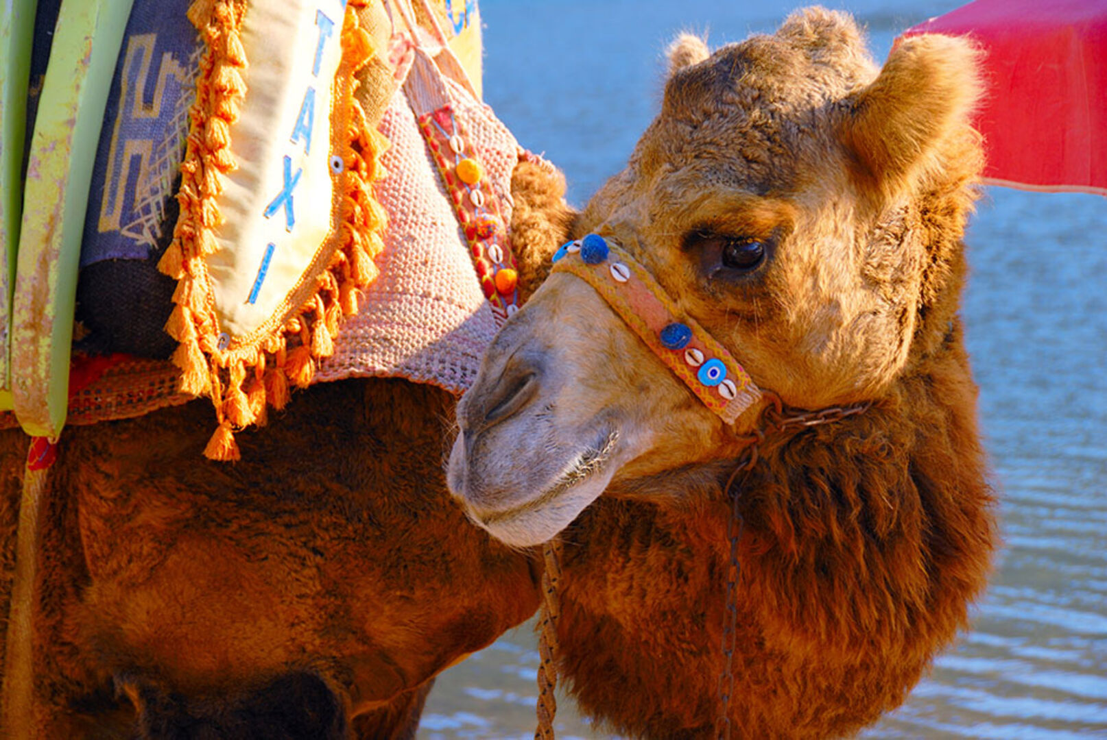 Zum Schluss noch einmal hoch hinaus: In Marrakesch ist man ganz gemächlich mit dem Kameltaxi mobil. Dabei kann man auf den sogenannten…