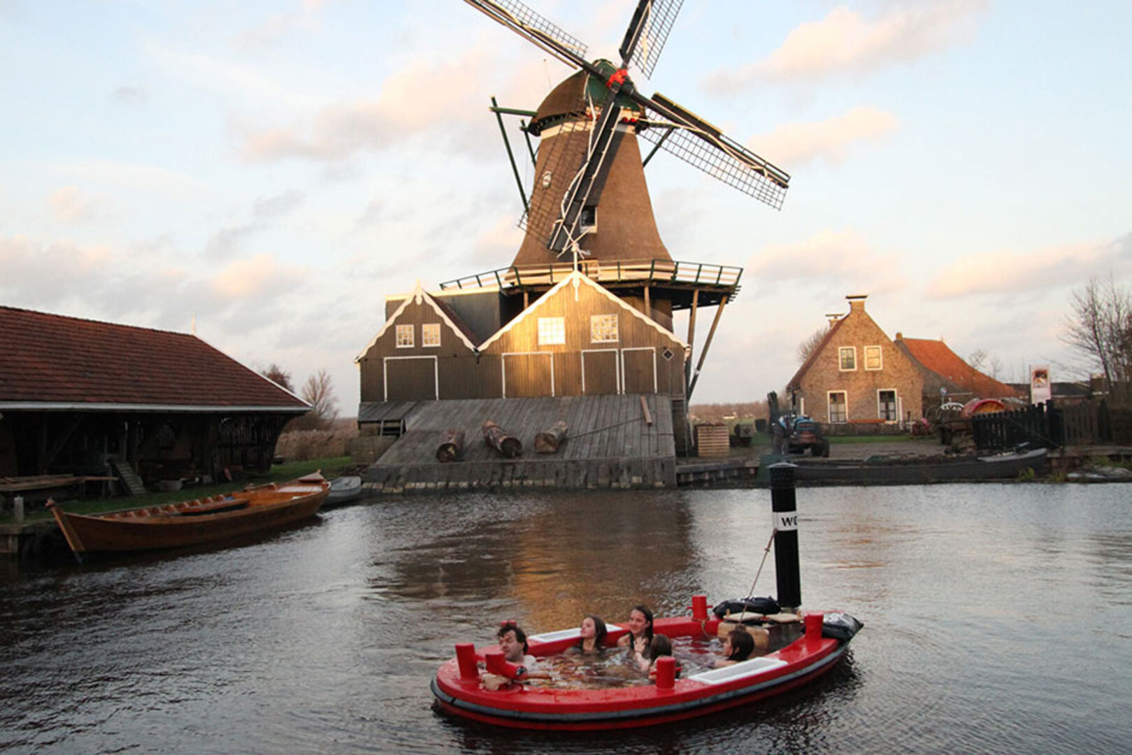In Rotterdam kann man gemütlich in der Badewanne – verzeihung, Whirlpool natürlich – durch den Hafen schippern. Zu kalt hat man dabei garantiert…