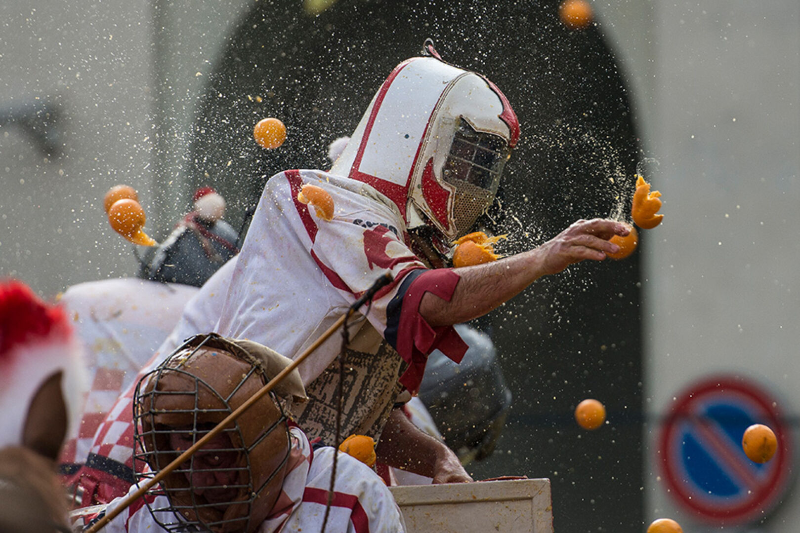 In Italien gehört eine Orangenschlacht zum Fasching dazu. Im Städtchen Irva werden jedes Jahr gut 500 Tonnen davon zum Karneval geschmissen. Wer schon immer mal in der Öffentlichkeit mit Obst werfen wollte, hat hier die perfekte Gelegenheit dazu. Der Brauch stammt aus dem Mittelalter, als es den Bewohnern der Stadt gelang, einen grausamen Feudalherren mit essbaren Wurfgeschossen zu vertreiben.