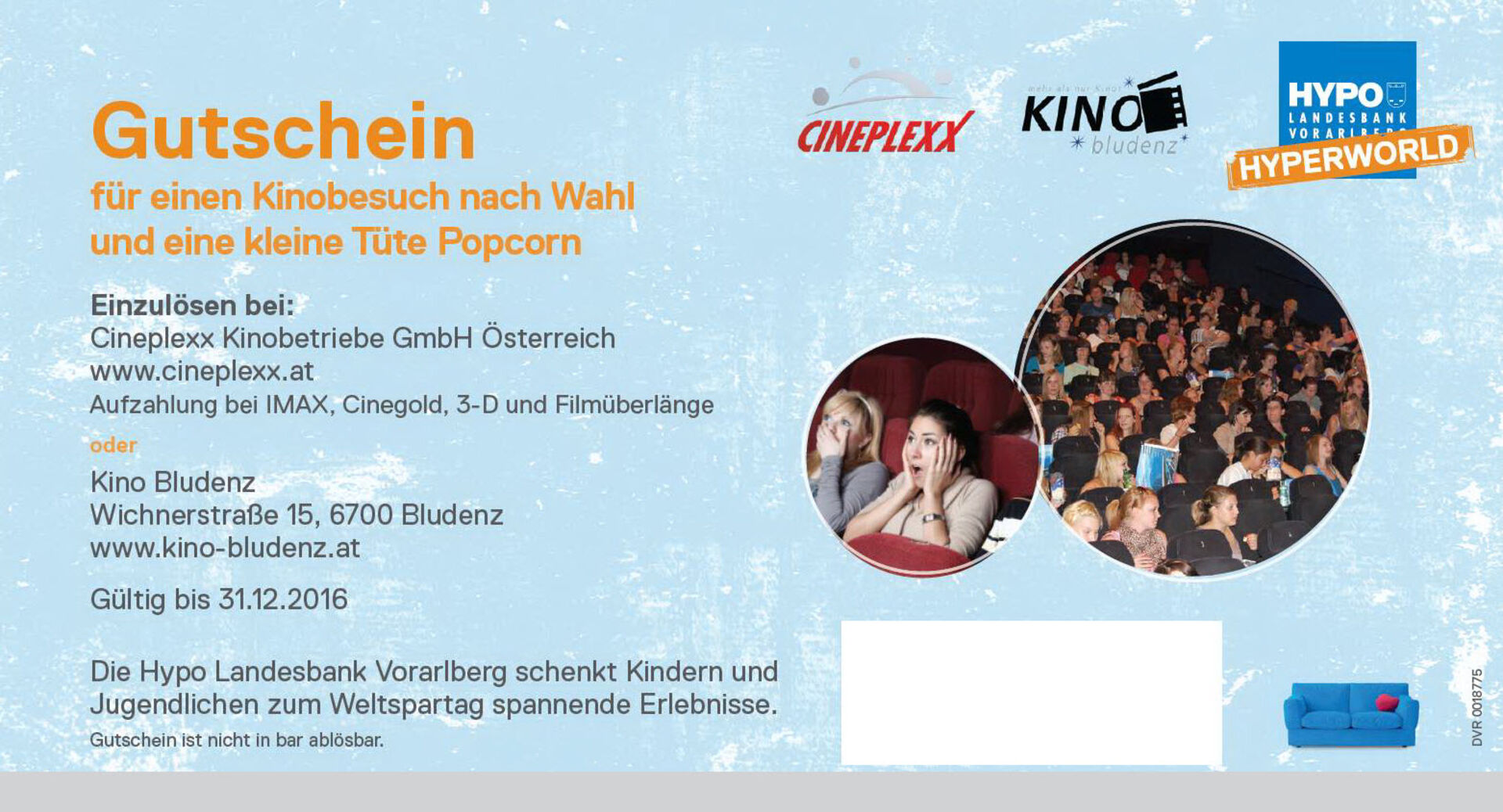 Hypo Vorarlberg: Gutschein für einen Besuch im Cineplexx