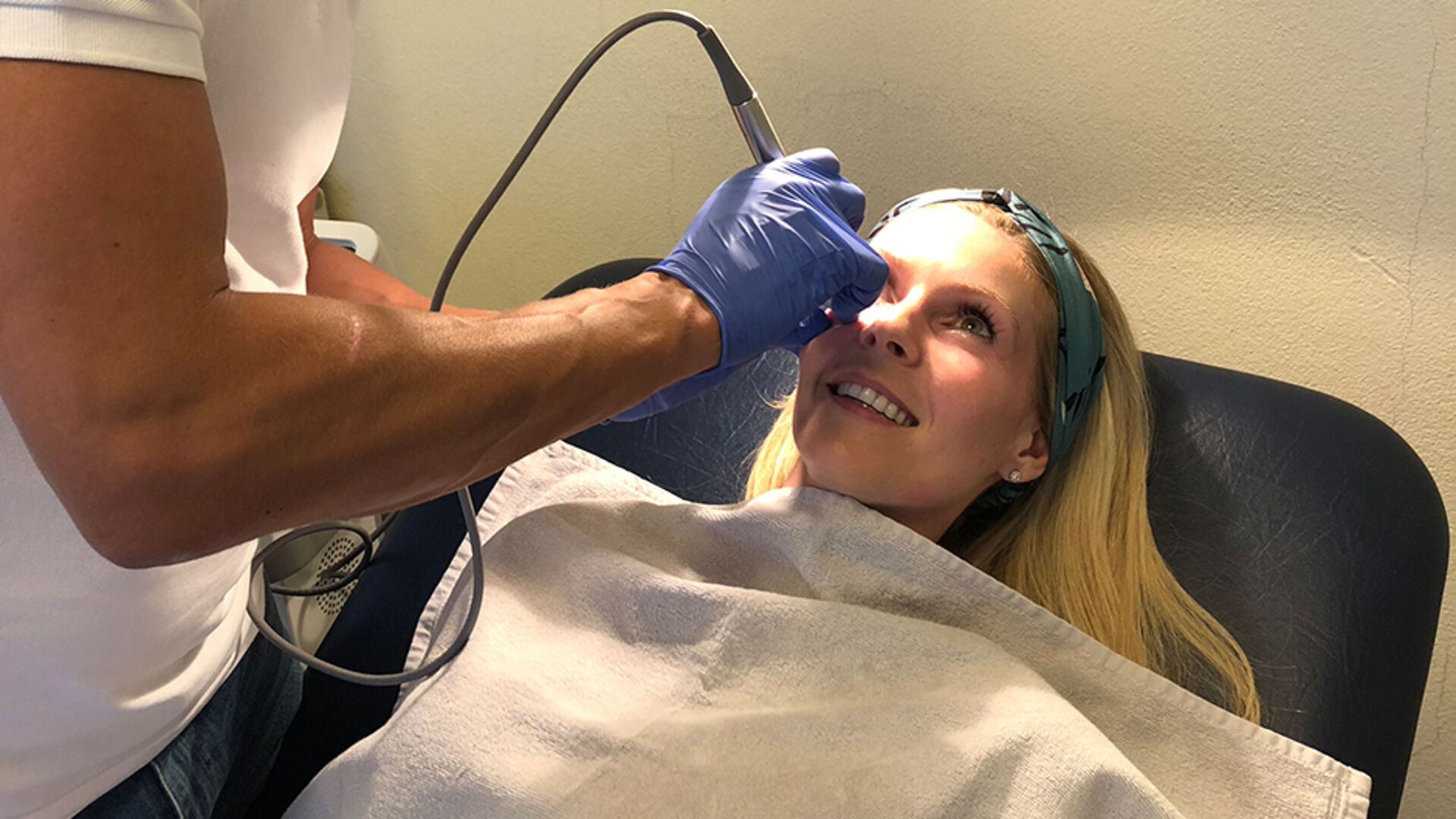 Ich bin sehr zufrieden und begeistert und sehe meiner dritten Behandlung schon gespannt entgegen! Nach der kommenden Sitzung wird Dr. Philipp Mayr PRF ("Platelet-rich fibrin") auf die Haut auftragen. Dadurch soll die Zellerneuerung noch zusätzlich angeregt werden.