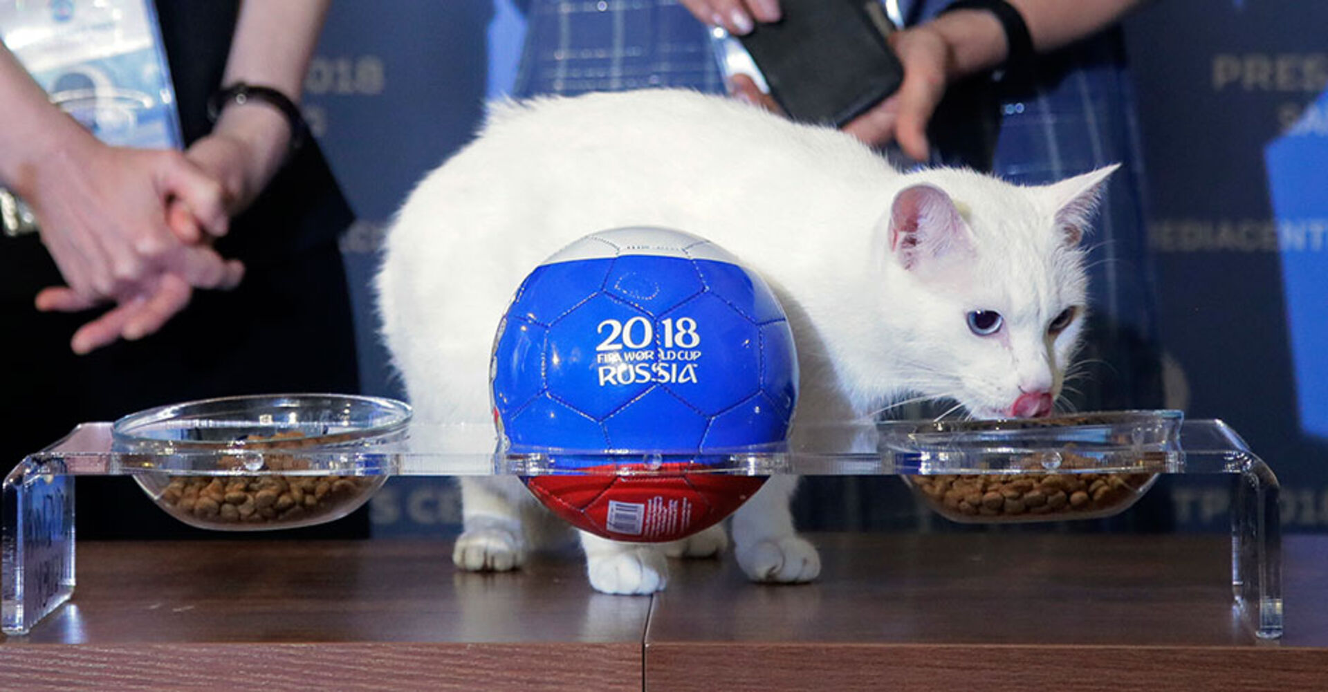 Im Gastgeberland Russland wird die weiße Katze Achilles den Ausgang eines jeden Spiels prophezeien! Der einst herrenlose Kater kommt so nun zu Ruhm. Gut zureden kann man dem Kater allerdings nicht, er ist nämlich taub und lässt sich so nicht so leicht aus der Ruhe bringen. Er kann bereits auf eine hohe Trefferquote zurückblicken. Seinen Tipp gibt Achilles ab, indem er sich zwischen zwei Futternäpfen entscheidet. Zur Vorbereitung wurde er einige Tage vor der WM auf strikte Diät gesetzt.