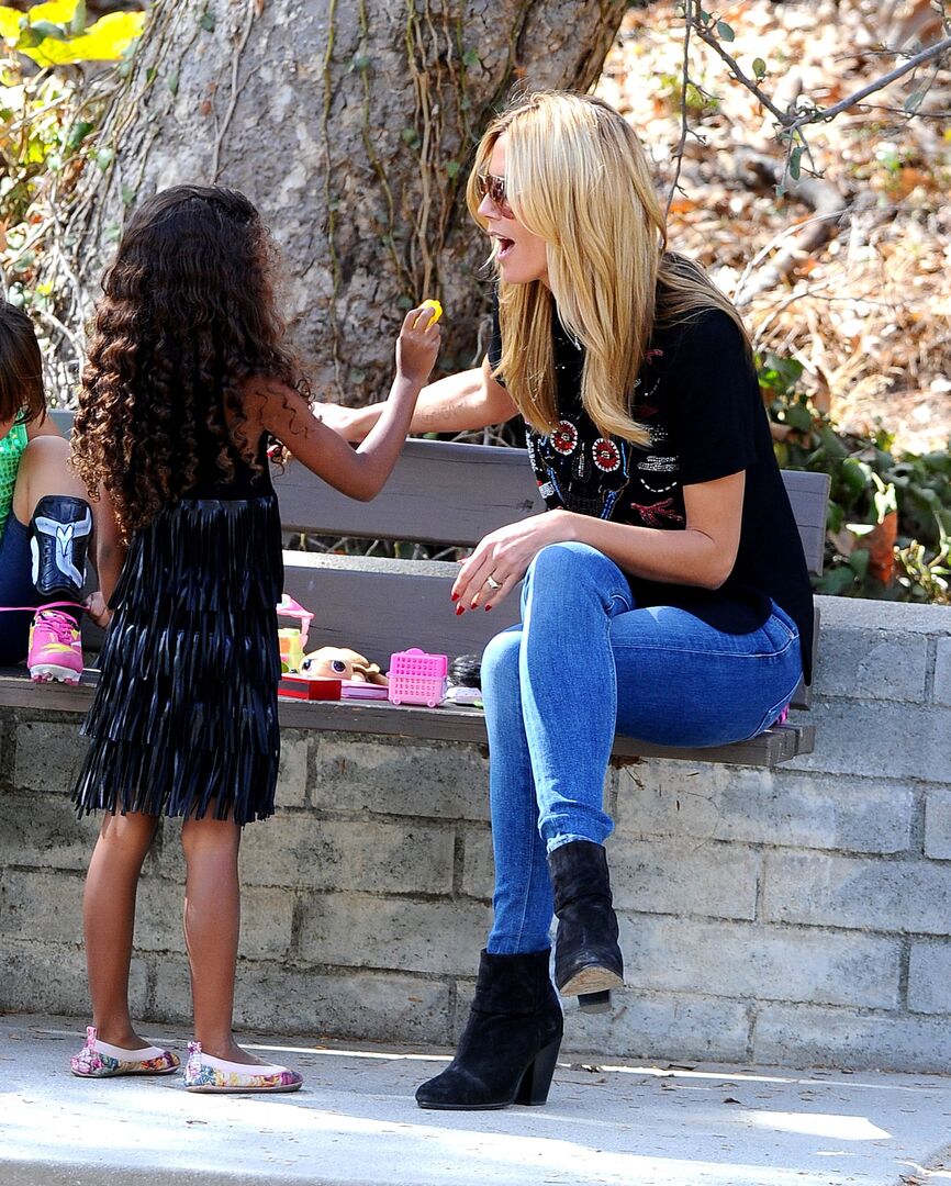 Nicht nur in Paris präsentierte Heidi Klum den rätselhaften Ring. Jetzt zeigte sich die GNTM-Jurorin zum zweiten Mal in Folge mit demselben Klunker bei einem Fußballspiel in Los Angeles.