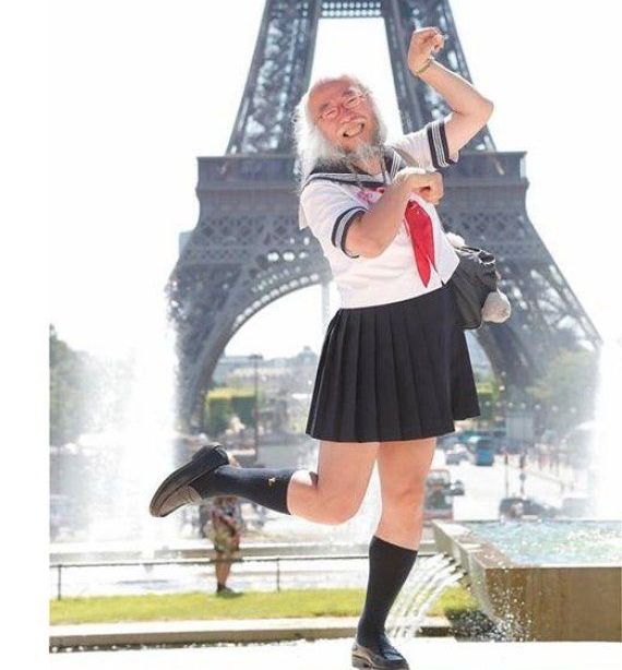 Alter Mann in Schulmädchenuniform wird zum Internet-Hit