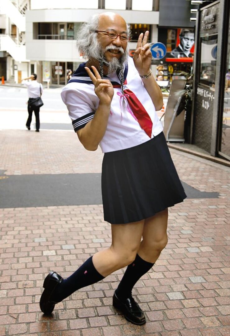 Eigentlich ist Herr Hideaki Kobayashi Fotograf und Computer-Techniker. Aber vor drei Jahren entdeckte der bärtige Mann eine neue Leidenschaft: "Seifuku", den japanischen Schulmädchenstil. Als er damals erstmals bei einem Kunstevent in Faltenrock und Krawatte schlüpfte, ahnte er aber wohl nicht, dass ihn diese Verkleidung eines Tages berühmt machen würde.