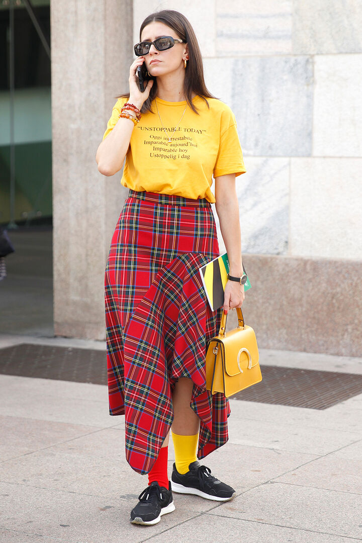 Wer besonders mutig ist kann mehrere Karomuster kombinieren. Bei diesem Style empfiehlt es sich aber, die unterschiedlichen viereckigen Designs aus einer Farbwelt zu kombinieren. Sonst wird das Gesamtbild schnell zu unruhig und wirkt wild und unstrukturiert. Einzelne Karo-Teile mit einfarbigen Teilen kombiniert sind dagegen für jeden etwas. Wer es lieber ruhiger mag, kann mit unauffälligen Nude-, Braun- und Rot-Tönen nichts falsch machen.