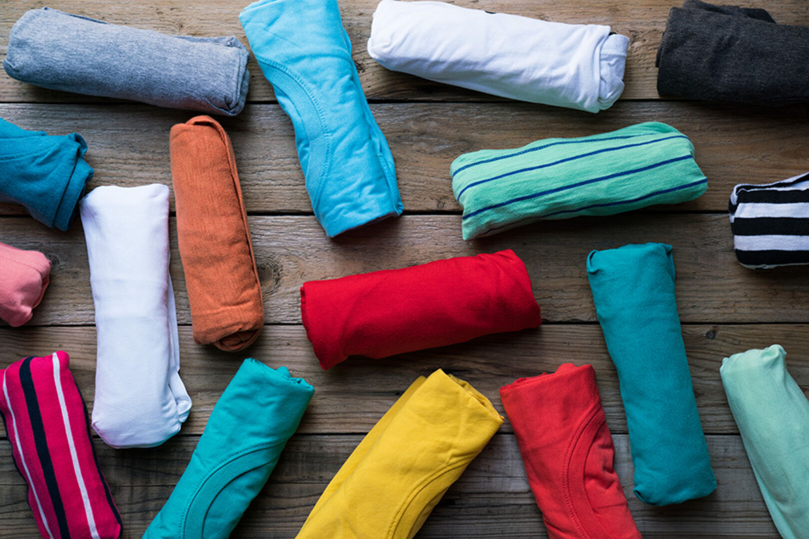 Für mehr Platz und Übersicht rollen Sie Ihre T-Shirts, Longsleeves, leichte Pullis, Tücher, Tops und sogar Hemden und Blusen und stellen Sie hochkant auf. Das Prinzip ist so einfach wie es klingt: Legen Sie Ihr Kleidungsstück mit der Vorderseite nach unten auf eine flache Oberfläche. Glätten Sie alle Falten sorgfältig mit den Händen. Jetzt falten Sie die Ärmel zur Mitte hin und rollen zum Beispiel das Shirt, vom unteren Saum nach oben, auf. Die fertigen Rollen verstauen Sie in einer Ordnungsbox. Weil Ihre Kleidung nicht gestapelt ist, sehen Sie sofort, was sie haben und schaffen beim Herausnehmen keine Unordnung. Unter der Devise "Magic Cleaning" hat Ordnungsexpertin Marie Kondo dieses Prinzip perfektioniert.