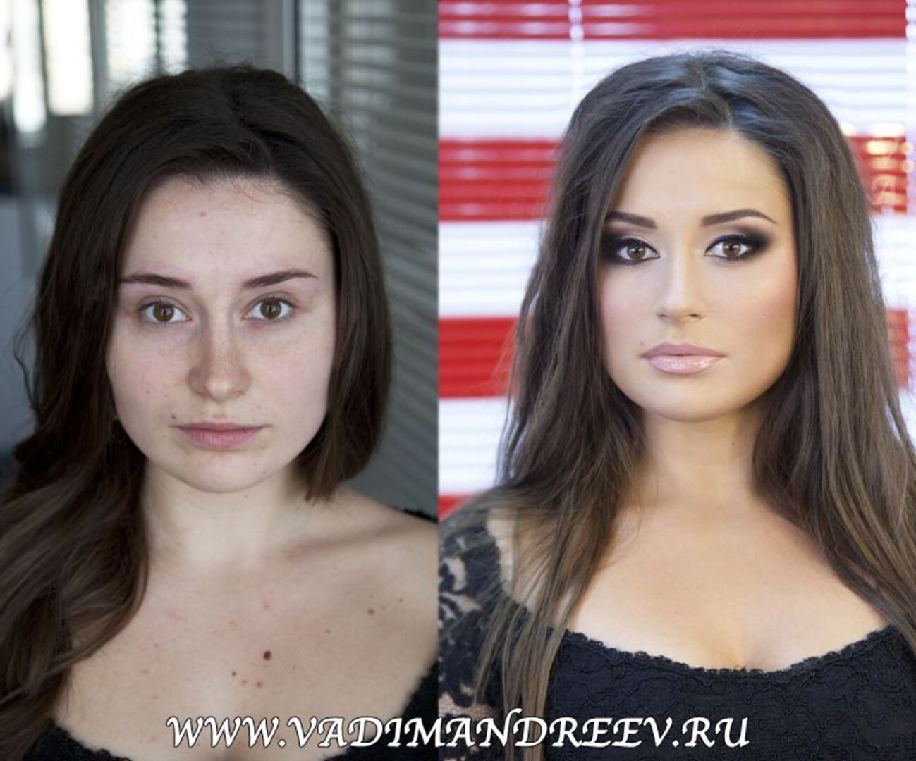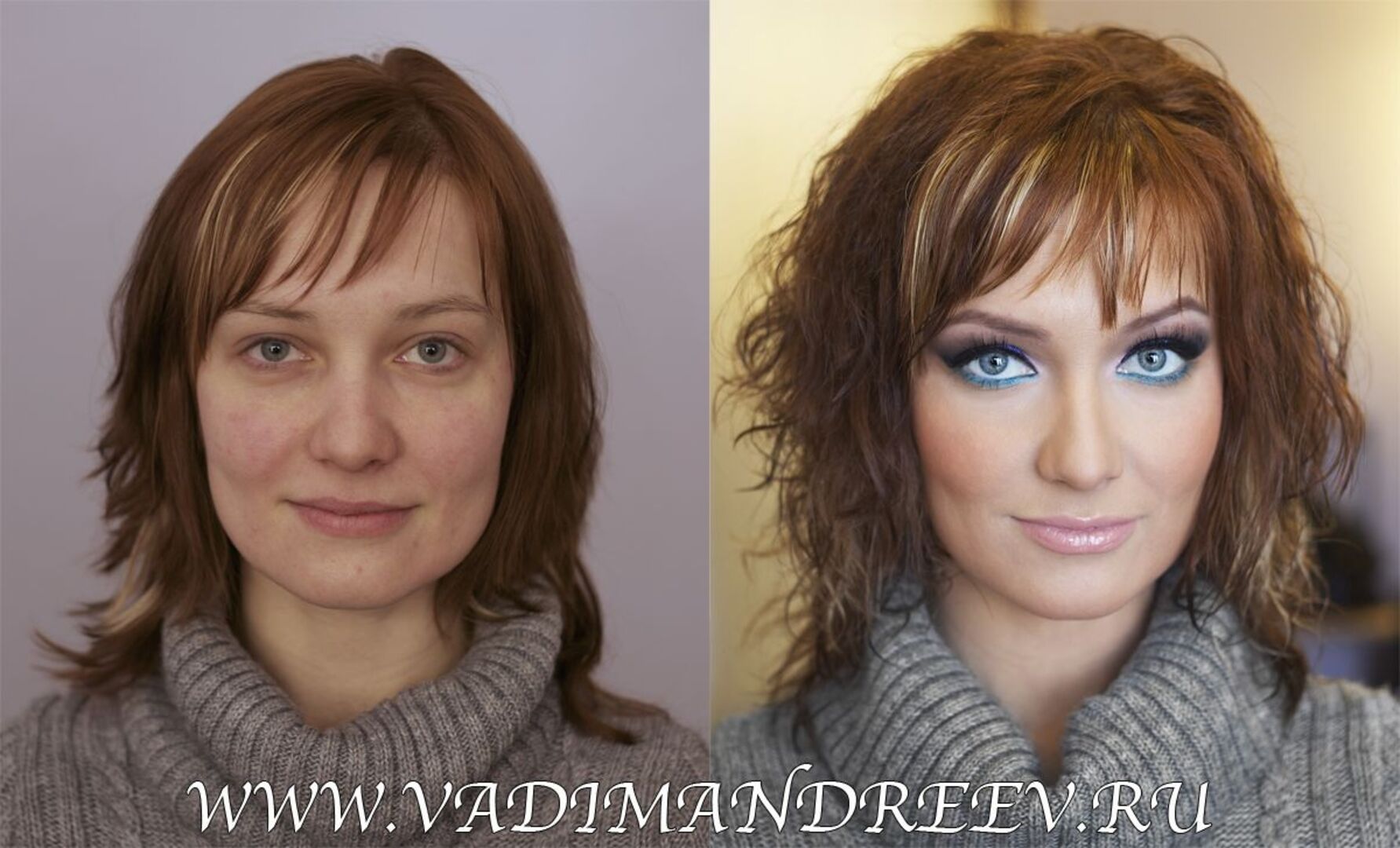 Make-up-Artist Vadim Andreev zeigt mit den Vorher-Nachher-Fotos auf seiner Webseite, wie man mit Schminke sein Gesicht verändern kann.