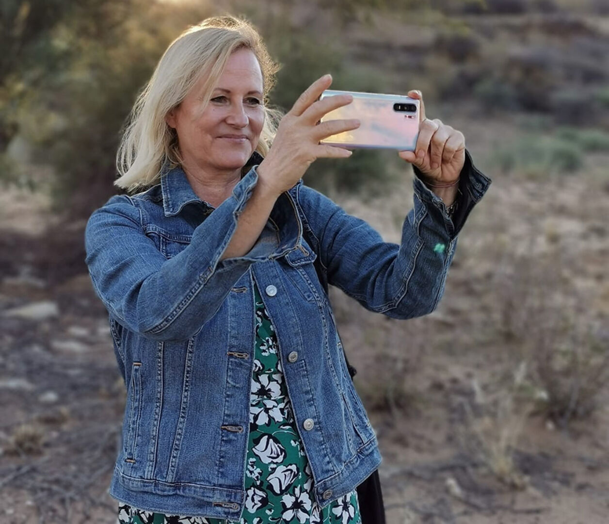 Hat man das Hier und jetzt demütig mit allen Sinnen erfasst, greift man schließlich doch noch zum Smartphone, um das Ereignis festzuhalten. Wie bitte - zum Smartphone? Richtig. Während andere Safari-Teilnehmer Taschen voller Fotoausrüstung mit sich herumschleppen, passt unsere Kamera in die Hosentasche. Sie ist Bestandteil und vielleicht wichtigstes Kaufargument des Huawei P30 Pro. Im Frühjahr auf den Markt gekommen, punktet es zwar auch mit langer Akku-Laufzeit und Top-Design. Aber deswegen haben wir das P30 Pro nicht den weiten Weg mit nach Namibia genommen. Wir wollen wissen, was die gehypte Leica Quad Kamera wirklich drauf hat. Ein Profi hilft uns dabei: Kristian Dowling. Ein Fotograf, dem die Celebritys vertrauen (Katy Perry, Robert Downey Jr.), ausgezeichneter Foto-Reporter, Leiter von Fotografie-Workshops und Leica-Botschafter. Wie heißt es so schön: Lernen von den Besten!