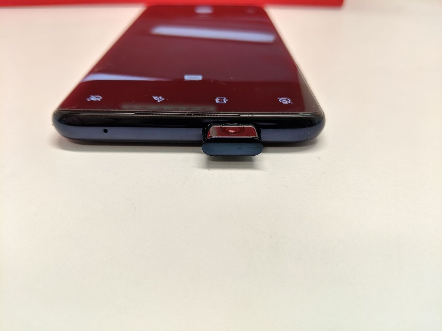 Ein sehr spannender Aspekt ist die ausfahrbare Frontkamera. Das 16-Megapixel-Teil fährt auf der Oberseite aus und ermöglicht Selfies in sehr guter Qualität. Es macht richtig Spaß, dem kleinen Teil beim Ein- und Ausfahren zuzusehen. Das Positive an dieser Technik: Es ermöglicht ein Smartphone ohne hässliche Displayeinkerbung (auch „Notch“ genannt). Der negative Aspekt: Aufgrund der motorisierten Technik ist kein Wasserschutz nach IP67 oder IP68 möglich. Sehr nützlich ist die Fallerkennung, die bei einem Sturz des Geräts die Kamera blitzschnell einfährt, damit kein Schaden daran entsteht.