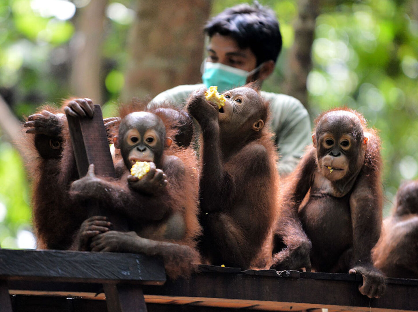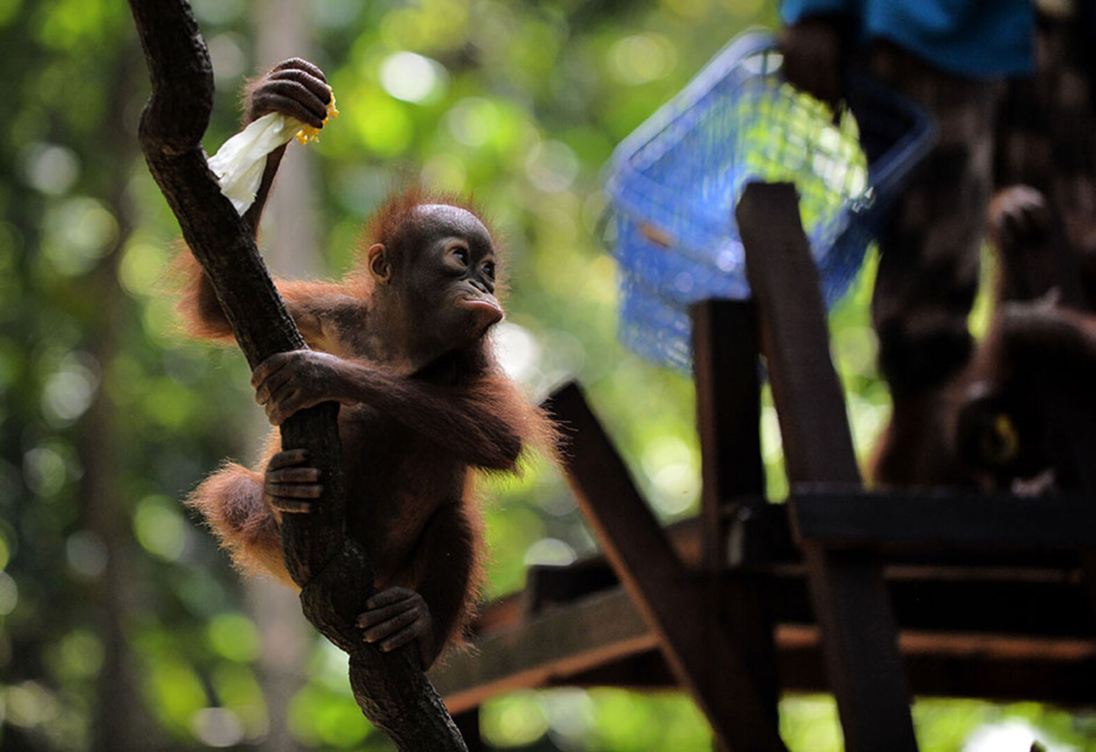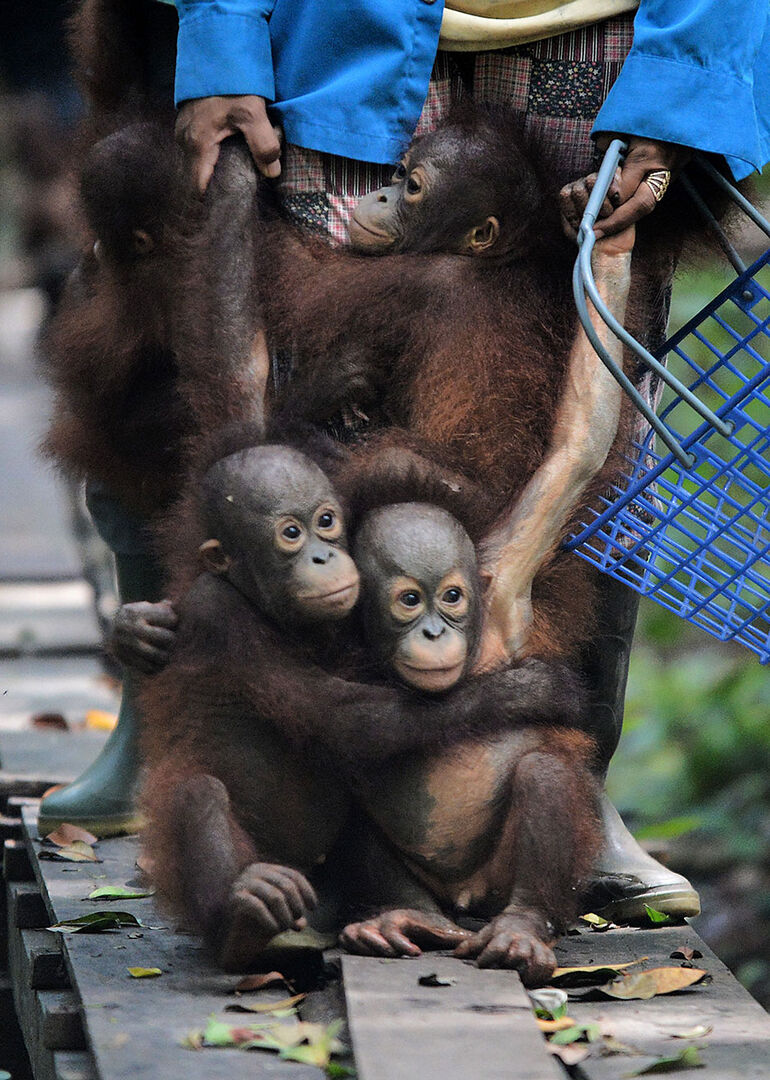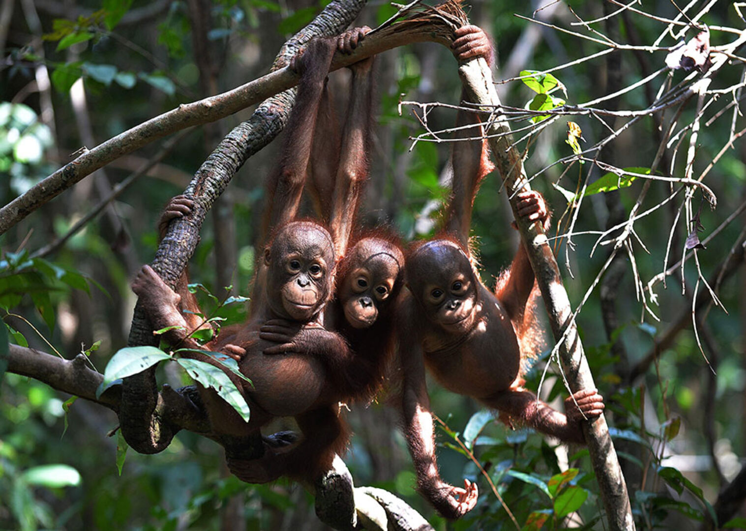 In der "Dschungelschule" in Borneo haben diese süßen Orang Utans ein neues Zuhause gefunden.