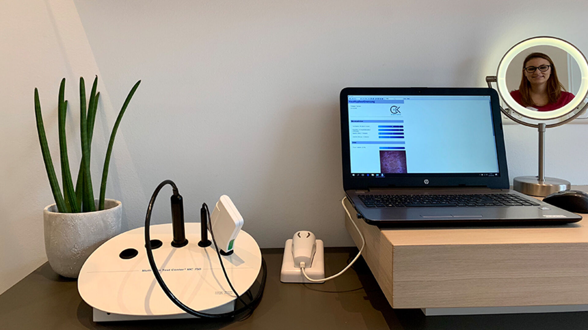 Mittels eines Hautanalyse-Gerätes wurden meine Hautfeuchtigkeit und das Hautfett gemessen sowie Porigkeit, Pigmentverschiebungen und Hautirritationen. Somit war es möglich, Pflegeprodukte ganz individuell auf meine Haut abgestimmt auszuwählen.