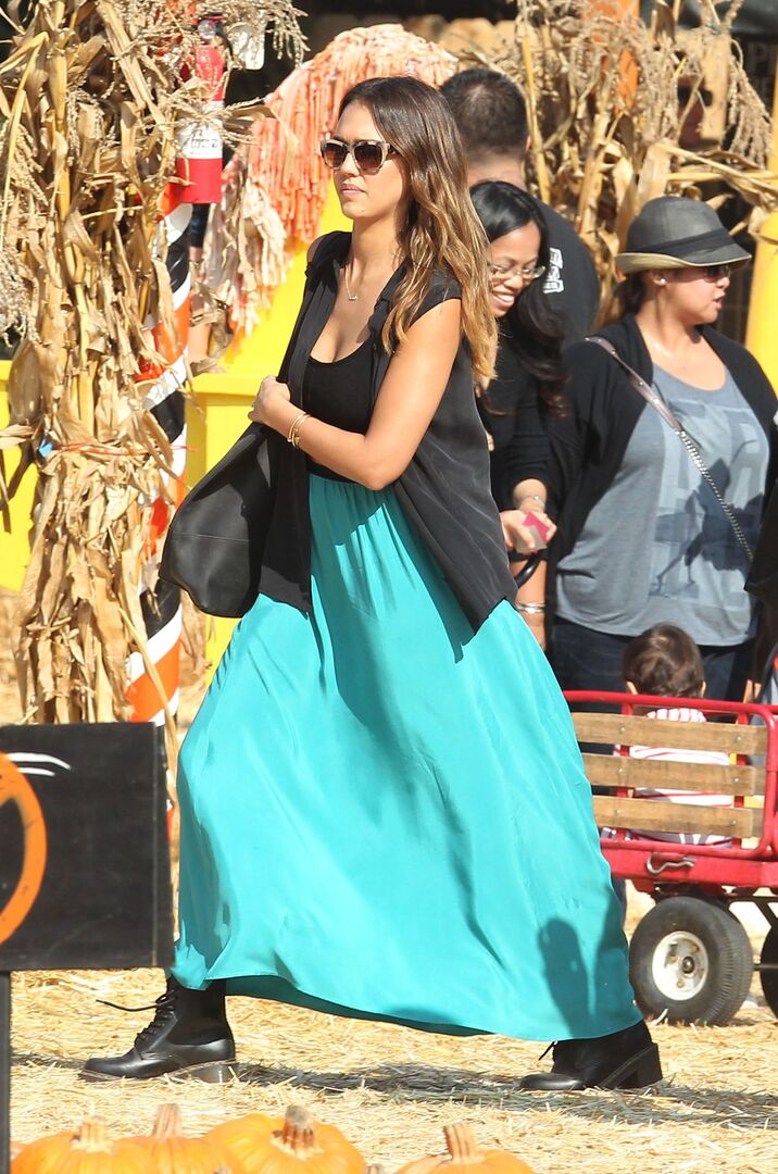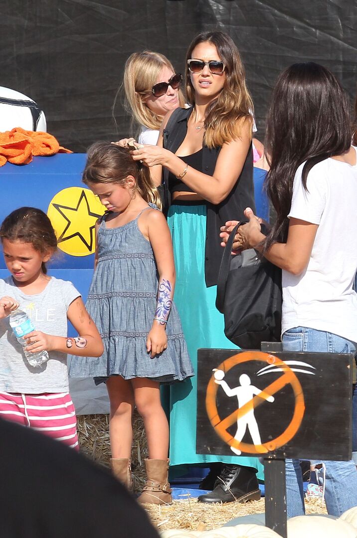Jessica Alba mit Tochter Honor auf dem Mr Bones Pumpkin Patch in West Hollywoo