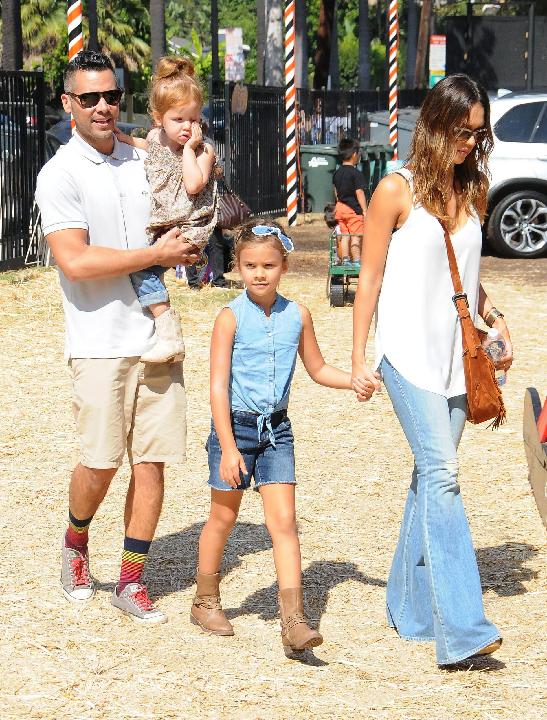 Jessica Alba mit Ehemann Cash Warren und den Töchtern Honor und Haven auf dem Mr. Bones Pumpkin Patch in West Hollywood