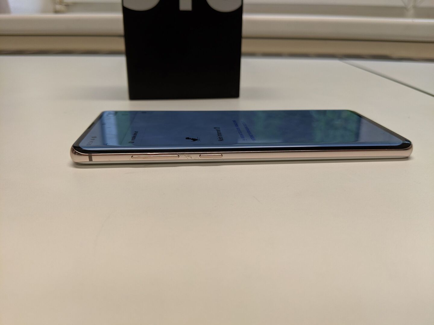 Unter dem wunderschön designten Keramikgehäuse verrichtet ein hauseigener Samsung Exynos 9820 seinen Dienst. Das von mir getestete Gerät kam mit 8 GB RAM und satten 512 MB Speicher (erweiterbar per microSD). Das traumhafte 6,4-Zoll-Dynamic AMOLED Display ist fast rahmenlos, auch dank dem Kameraloch rechts oben. Dort ist die Selfie-Dual-Cam eingebaut, die einen 10-Megapixel Hauptsensor und einen 8-Megapixel Tiefensensor für schönere Portraits bietet. Ich finde diese Lösung auch optisch nicht störend, da ein hässlicher Notch entfallen kann und sich das Kameraloch in die Statusleiste einfügt und dort nicht stört.