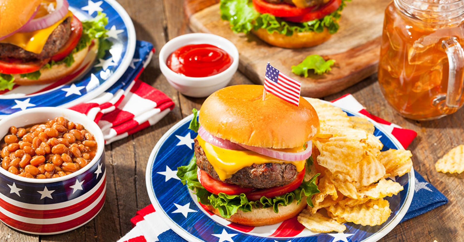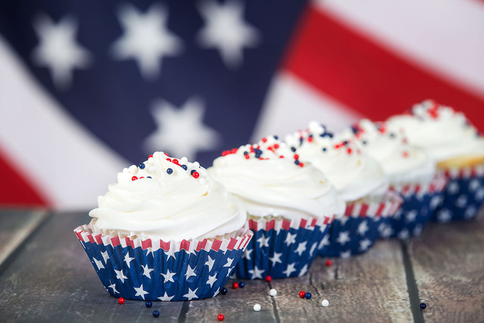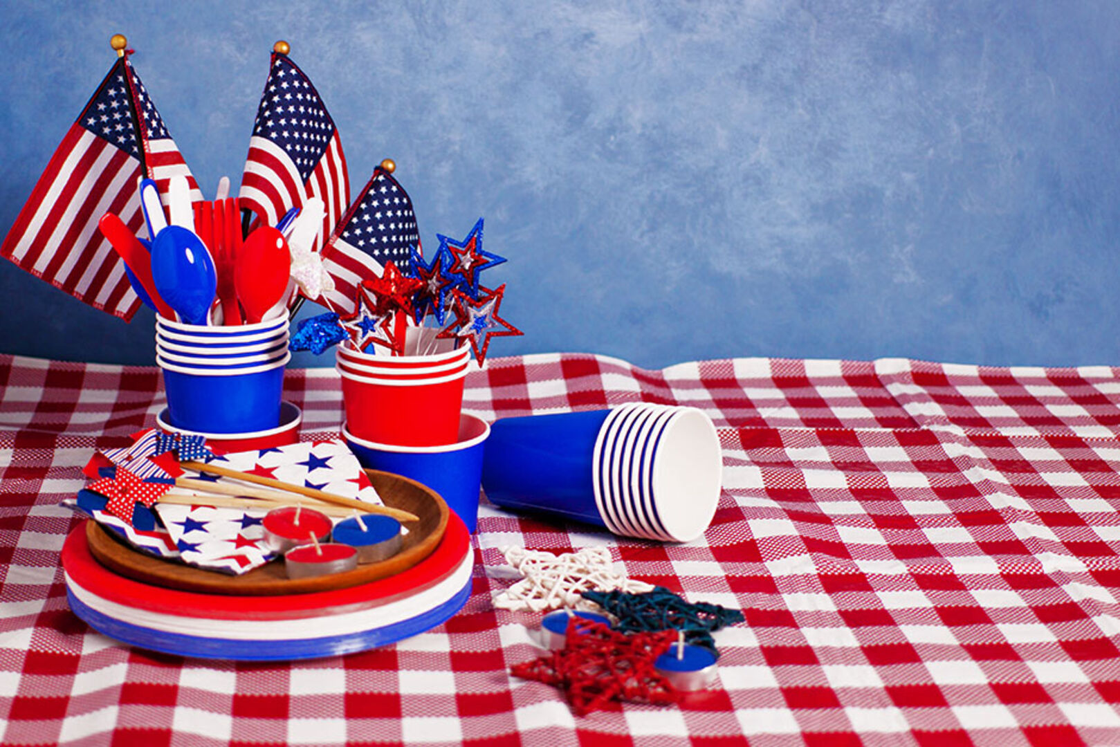 Rot, Blau, Weiß: Fähnchen-Zahnstocher für das Büffet, Servietten, Geschirr, Konfetti oder Papierschlagen in den Landesfarben der USA für alle, die aus der Übertragung des Super Bowl ein richtiges Fest machen wollen.
