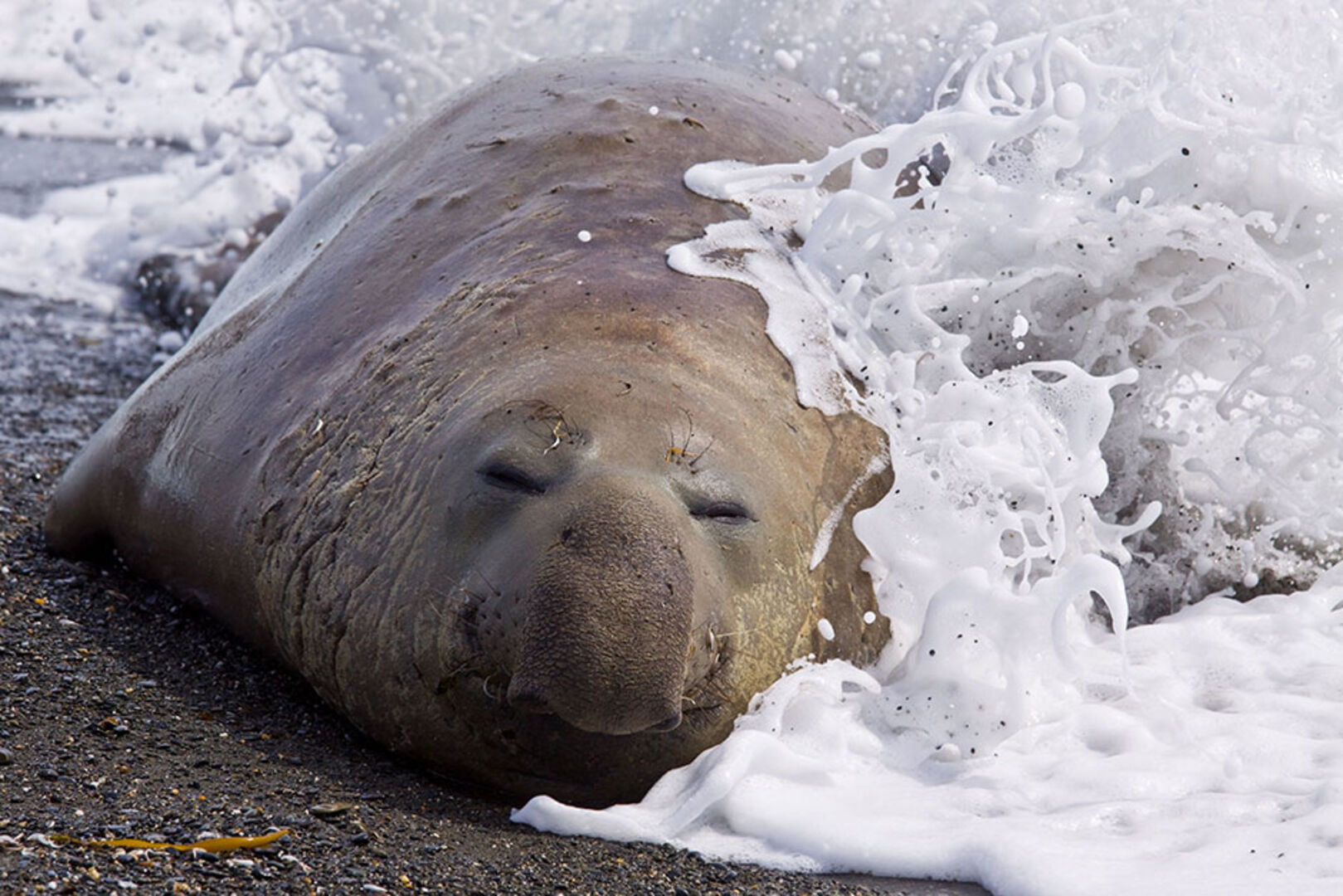 Ganz entspannt: See-Elefanten sind die größten an Land lebenden Raubtiere. Vorsicht ist also angebracht, auch wenn die Tiere im Allgemeinen recht gemächlich…