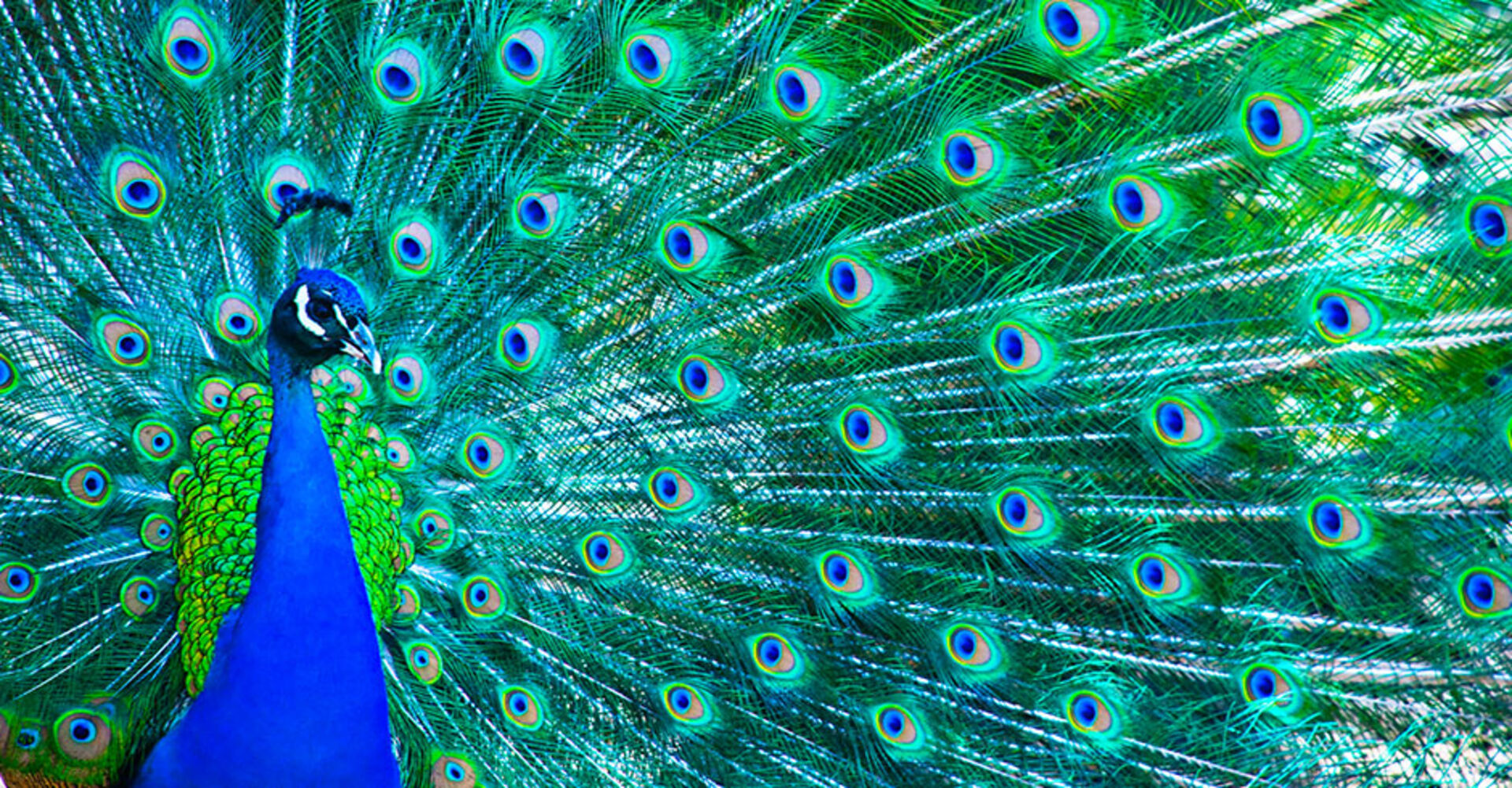 Männliche Pfaue können sich zwar in die Lüfte erheben, aufgrund ihres prachtvollen Gefieders aber nicht wirklich weit fliegen. Die aus Indien stammenden Tiere…