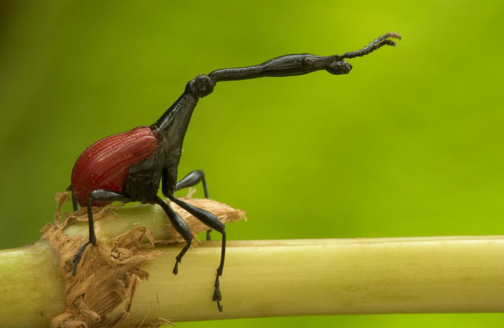 Ein langer Hals gilt als besonders verführerisch – beim Giraffenhalskäfer nimmt er sogar 70 % der Körperlänge in Anspruch. Oh, là, là!
