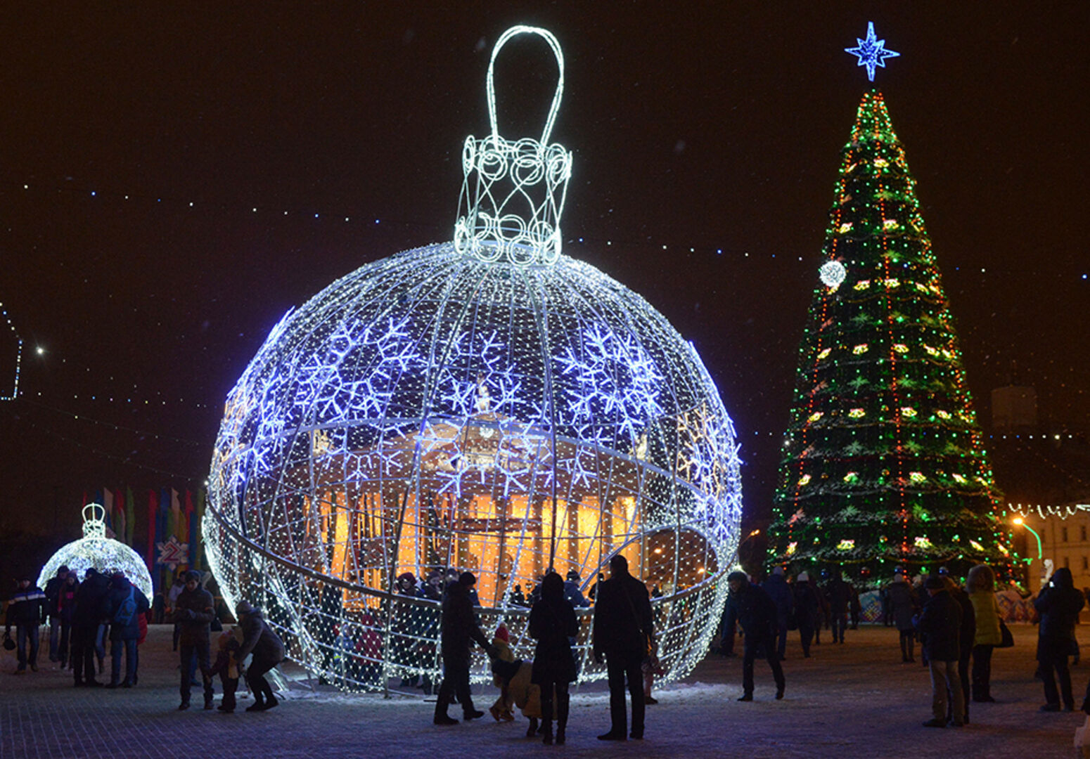 Eine riesige Weihnachtskugel wird zum Blickfang in den Straßen von Minsk.
