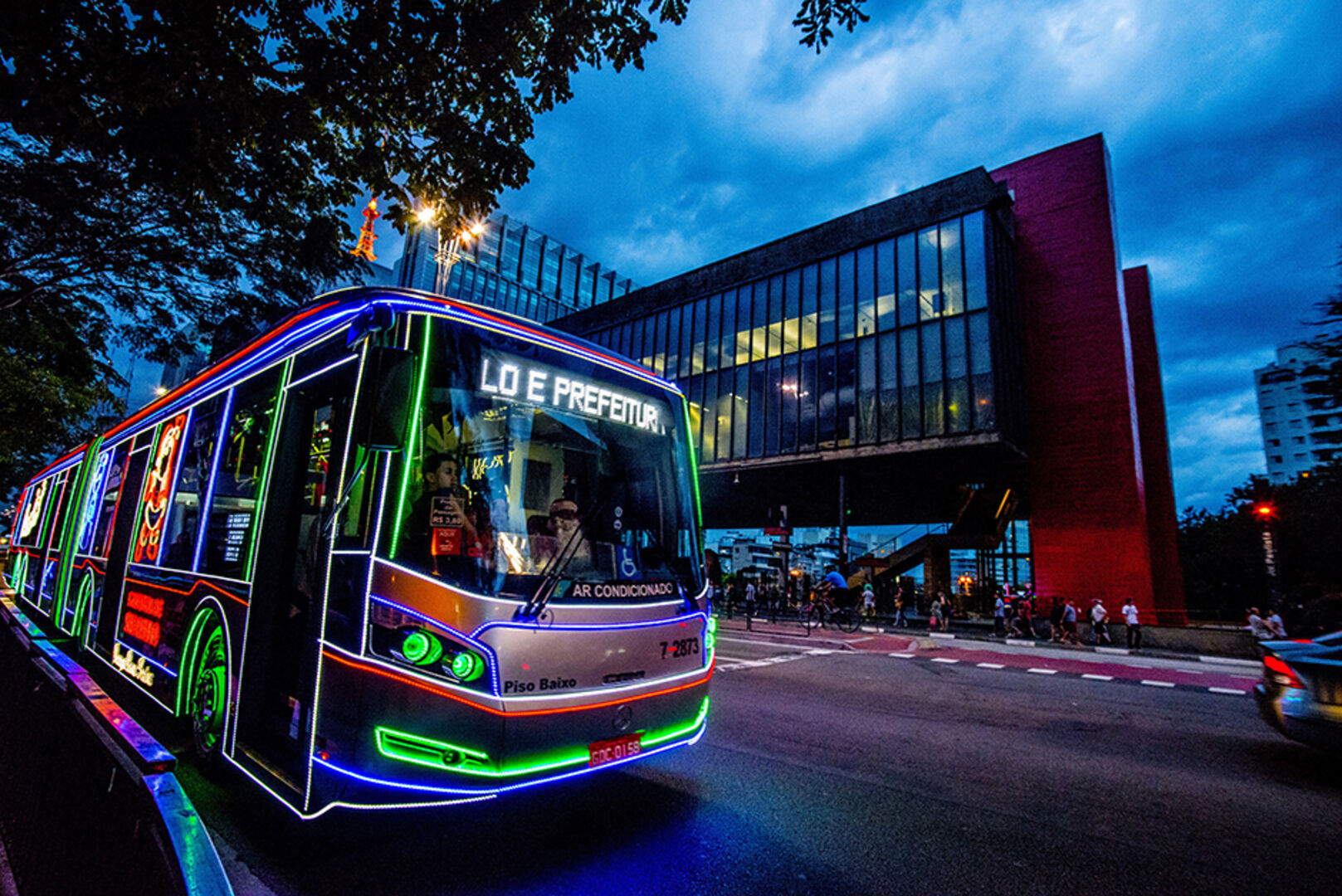 Zu Weihnachten geht es in Sao Paula farbenprächtig zu. Das gilt auch für die öffentlichen Verkehrsmittel der Stadt. Mit Weihnachtslichtern…
