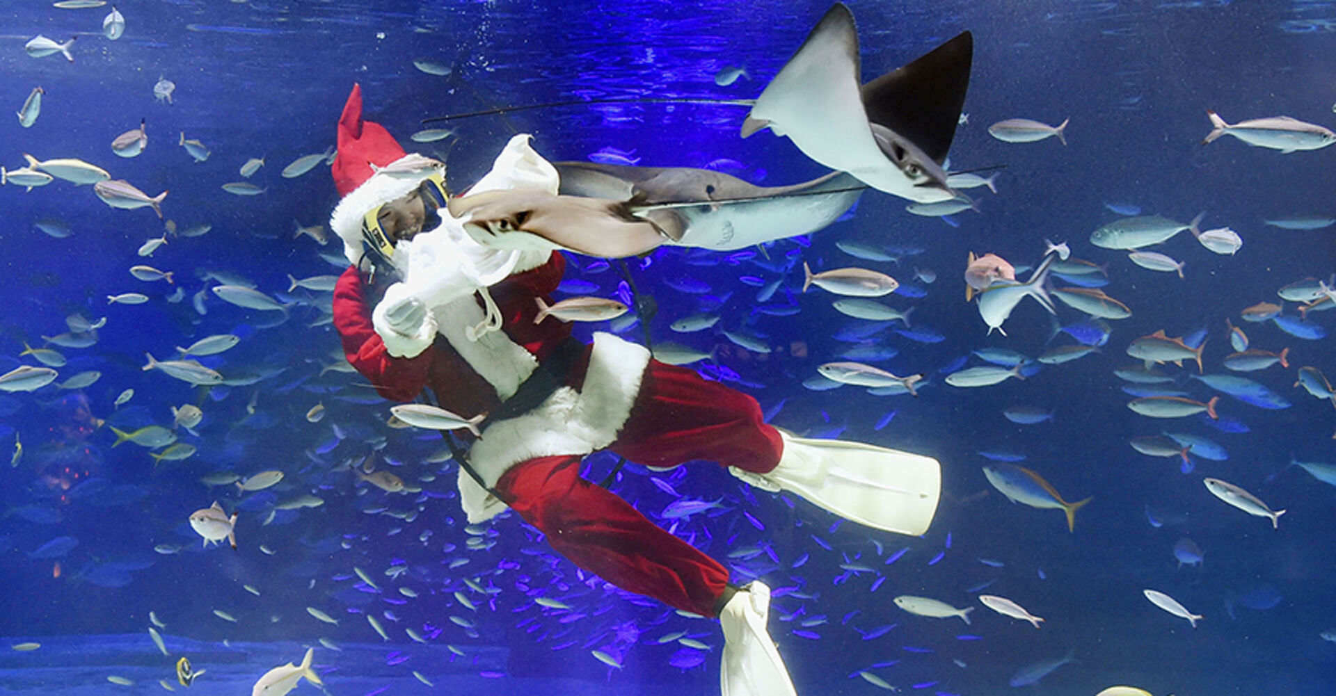 Einmal im Jahr geht Santa Claus in Tokio im Sunshine Aquarium auf Tauchstation mit den Rochen und sorgt für vorweihnachtliches Staunen unter den…