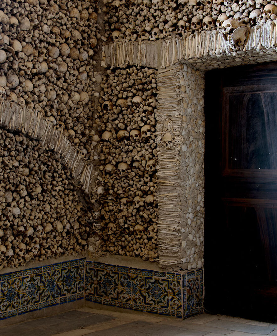 In Portugal findet man die Capela dos Ossos, die Knochenkirche, die aus den Gebeinen von mehr als 5.000 Mönchen errichtet wurde. Über dem Eingang kann man auf der Inschrift lesen: "Halte einen Moment inne, und bedenke, dass Du diesen Zustand erreichen wirst." Da wird einem in der Tat unheimlich zumute …