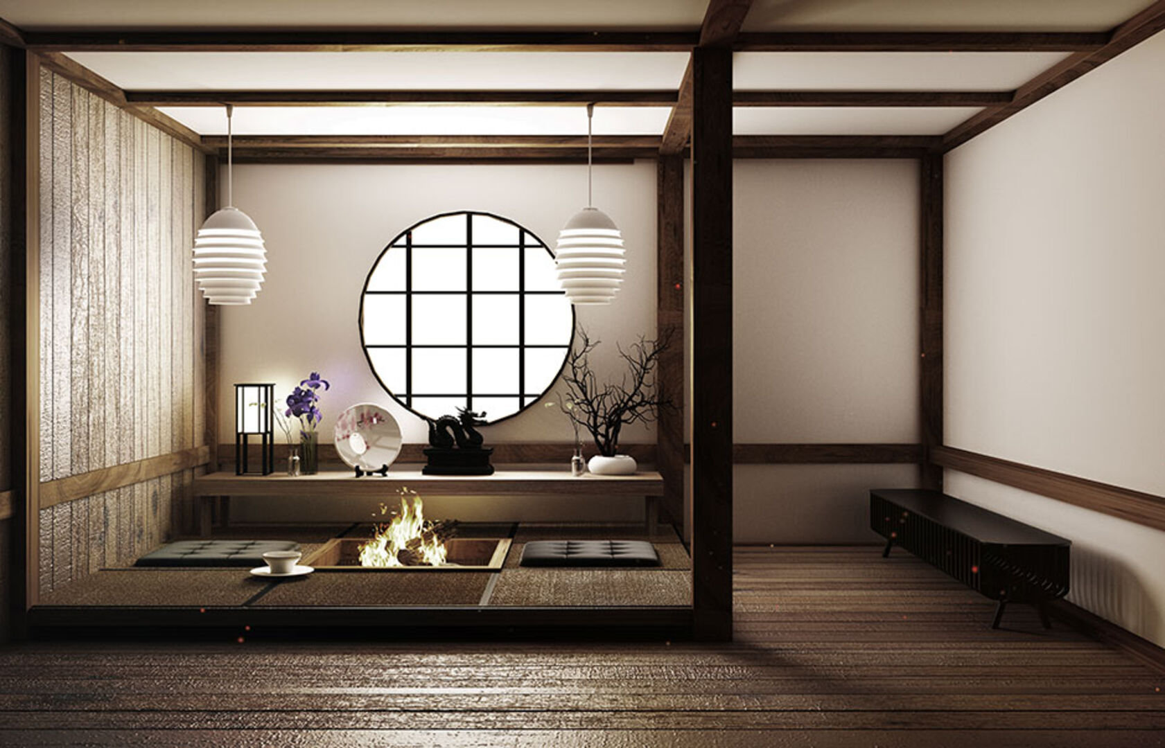 Der japanische Einrichtungsstil ist geprägt von minimalistischer Möblierung und schlichten Stücken aus Naturmaterialien – Bambusmatten und Reisstrohteppiche, Vollholztische und Paravents aus Reispapier. Dunkles Holz und naturfarbene Textilien dominieren den Raum, gerne aber dürfen Bodenkissen, Lampions oder übergroße japanische Wandfächer in kräftigem Rot oder Gelb strahlen. Nicht fehlen dürfen Pflanzen – Bonsais, Lotusblumen, Orchideen oder Kirschblüten zieren Vasen, Anrichten und Fensterbänke.