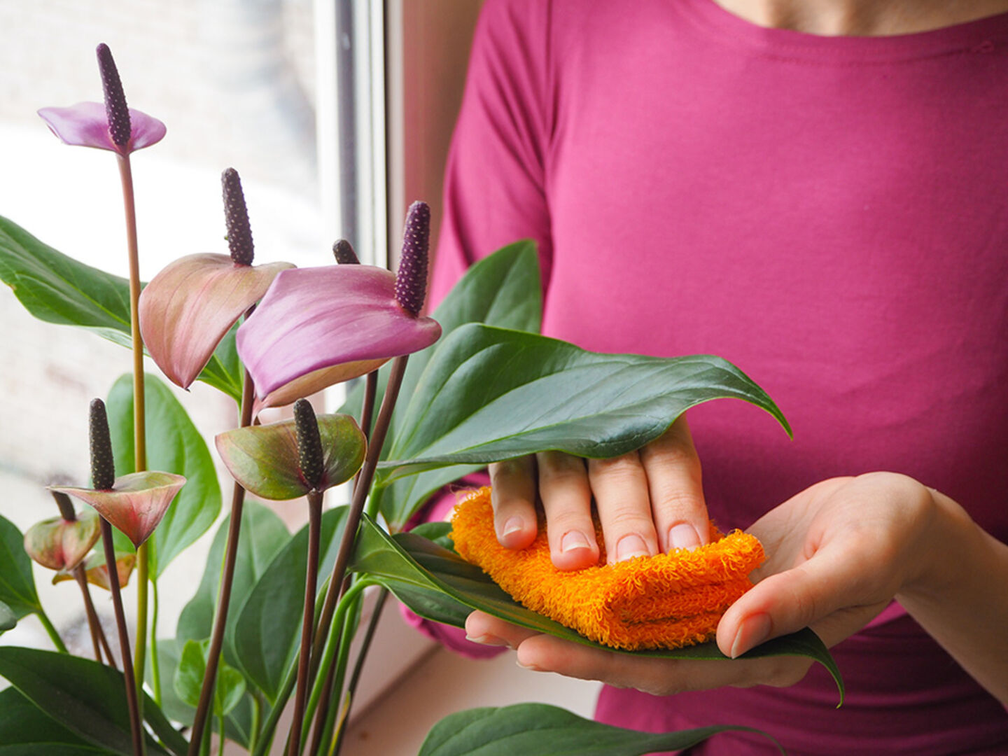 Ihre Zimmerpflanze ist Ihnen für eine regelmäßige Beauty-Pflege bestimmt dankbar. Befreien Sie sie regelmäßig von Staub. Ihr grüner Mitbewohner hat es dadurch bei der Photosynthese leichter, und Sie haben gleich die Gelegenheit zu überprüfen, ob es ihm gut geht, und er ordentlich versorgt ist.