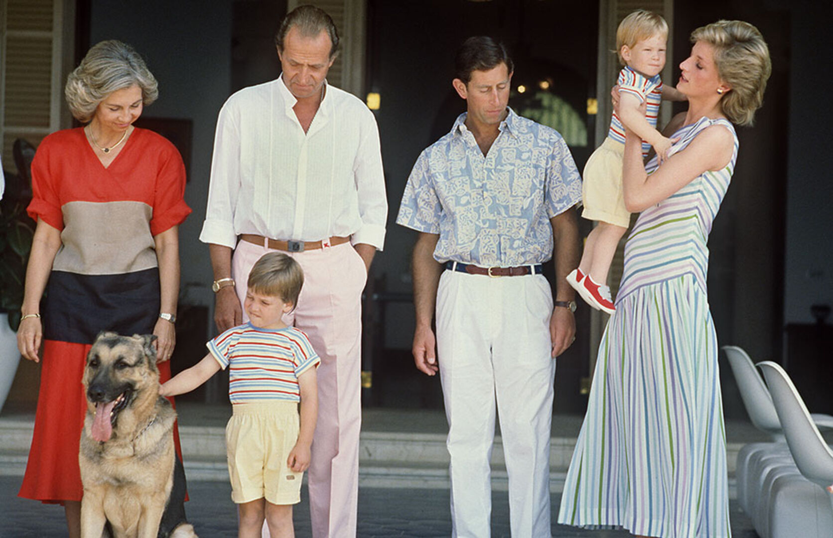 Diana und Charles bei einem Treffen mit der spanischen Königsfamilie