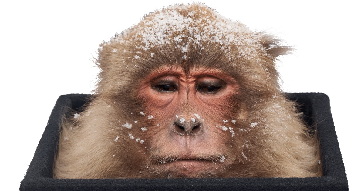 Frierender Affe & Kadaver-Vitrine