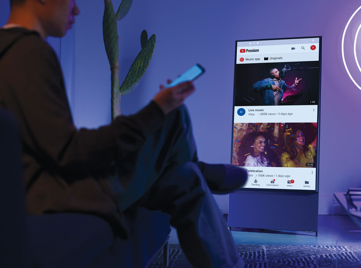 Samsung verdreht uns den Fernseher! „The Sero“ ist ein spannendes Produkt, kann doch der Bildschirm um 90 Grad rotieren. Warum? Immer mehr Inhalte sind an Smartphones und Tablets angepasst und die haben ja bekanntlich ein längliches Display. Um diese Inhalte gut anzeigen zu können, dreht sich „The Sero“ einfach danach. Vernetzt ist er mit dem Smartphone, die Lautsprecher befinden sich im Standfuß. Das 43-Zoll große Schmuckstück ist ab sofort um 1.599 Euro erhätllich.