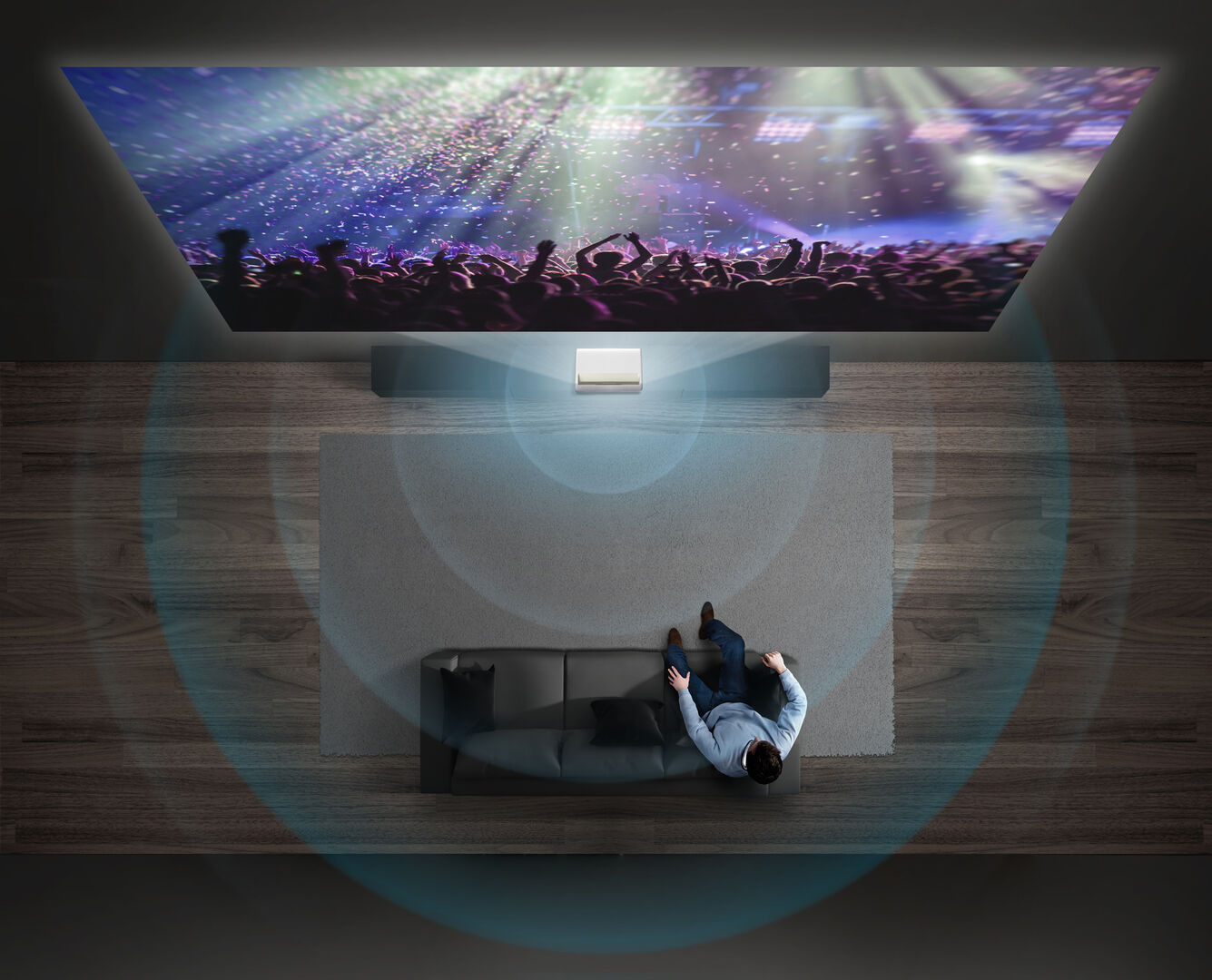 Projektor statt Fernseher? Samsung hat da was und zeigt „The Premiere“, einen Ultra-Kurzdistanz-Projektor, der ein Bild mit bis zu gigantischen 120-Zoll auf die Wand „zaubert“. Dank Triple-Laser-Tecnologie soll das Bild so farbenfroh und scharf wie noch nie sein. 4K-Auflösung und HDR10+ sorgen für zusätzliche Begeisterung. Sound ist in das kompakte Gerät ebenso eingebaut. Für Fans großer Bildschirme und platzsparender Geräte die erste Wahl.