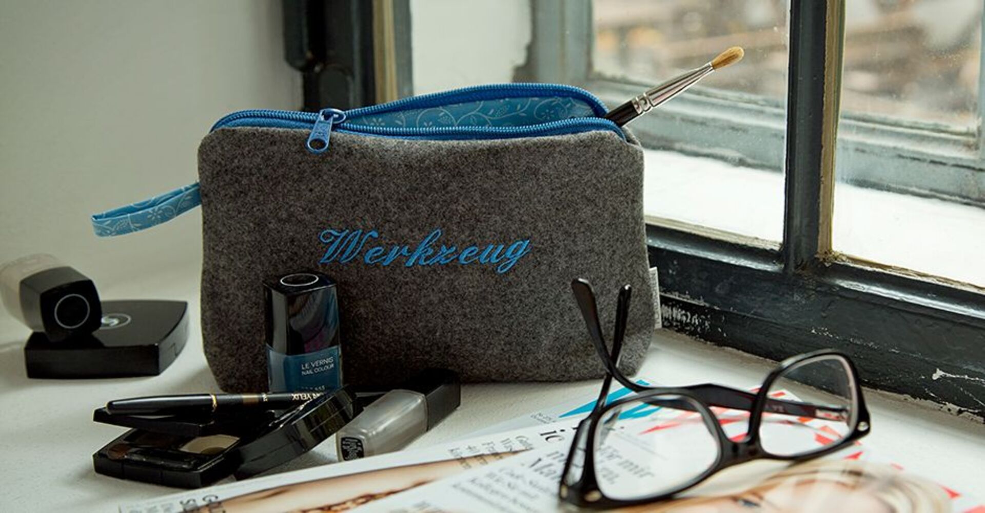 "Werkzeug" wie Lippenstift, Puder und Mascara kommt in das Necessaire. Der geräumige Shopper ist auch beim Radln ein treuer Begleiter. Doch das sind nur einige Dinge des täglichen Gebrauchs, für die Gabriele Lechner ein schönes, schlichtes Design entwickelt. Die Palette reicht bereits jetzt vom Brotkörbchen bis zu Handyhüllen, das Thema Langlebigkeit spielt dabei immer einer große Rolle. Passend zur Wiesn-Zeit gibt es außerdem Armbänder, die aus bunten Dirndlstoffen gefertigt wurden. Da steht dem Anbandeln wortwörtlich nichts mehr im Wege!