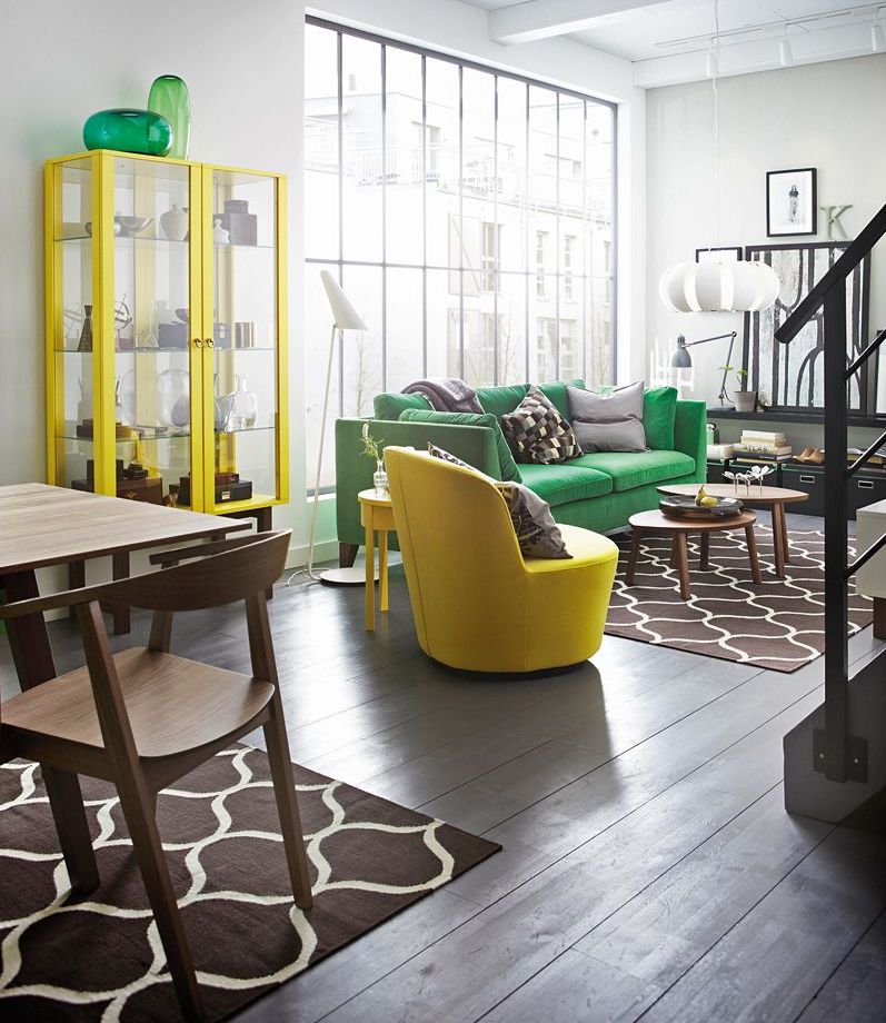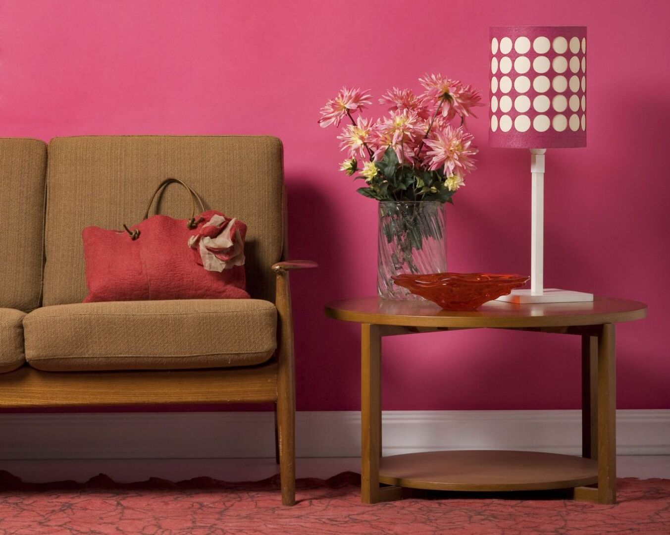 Knallige Zeitreise. Zurück in die 60er- und 70er-Jahre geht es beim Retro-Stil. Typisch sind organische Formen bei Möbeln sowie grafische Muster bei Prints und Textilien. So harmoniert der Nierentisch optimal mit der Tapete mit großflächigem Grafik-Print oder der Plastiksessel mit dem Pop-Art-Bild und dem grellen Flokati-Teppich. Der Retro-Stil ist schwungvoll und experimentiert mit Formen und Materialien – Holz schmiegt sich an Plastik – und verschiedenste Stoffe werden miteinander kombiniert, wie Plüsch mit Leder oder Leinen mit Strick. Charakteristisch sind auch Knallfarben, allen voran Orange, Pink oder giftiges Grün.