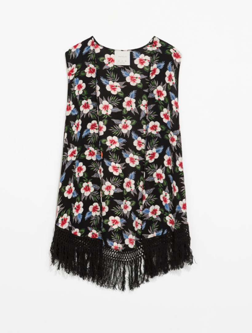 Weste mit Blumenmuster und Fransen. Von Zara, um € 29,95