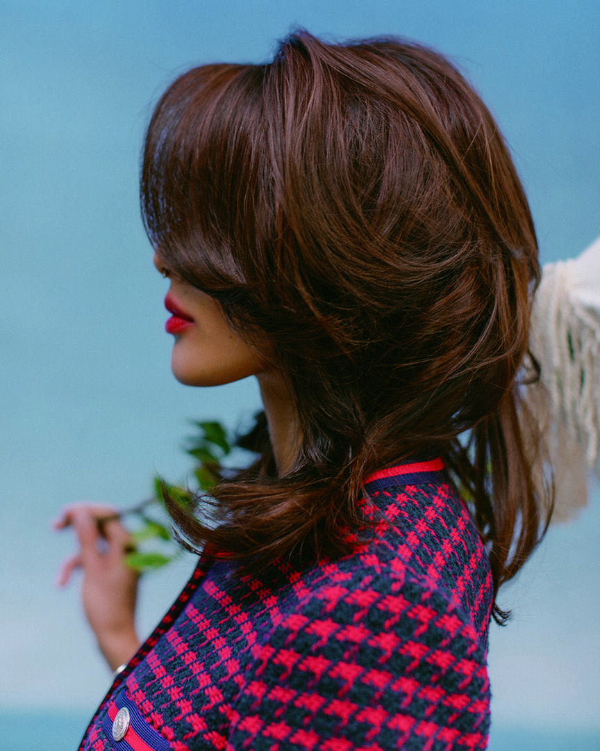 Perfekt geschnittenes, glänzendes, glattes oder voluminös geföhntes Haar in sanften Schokotönen mit Abstufungen von rosa bis lila.