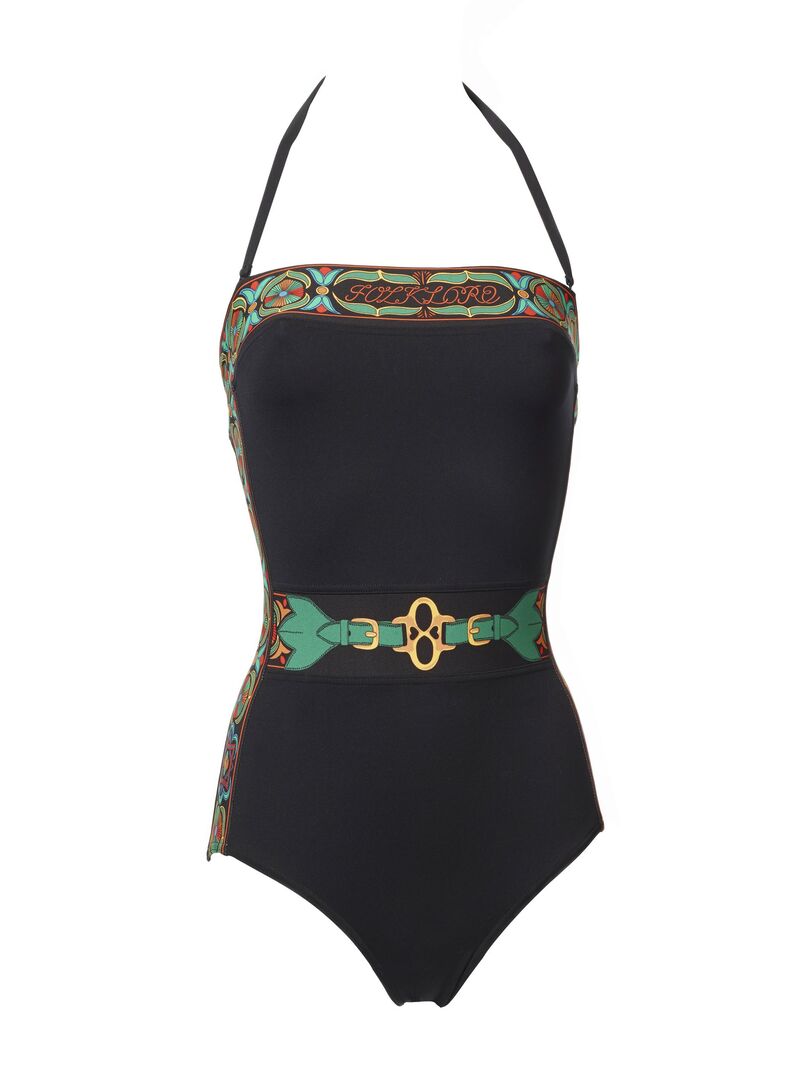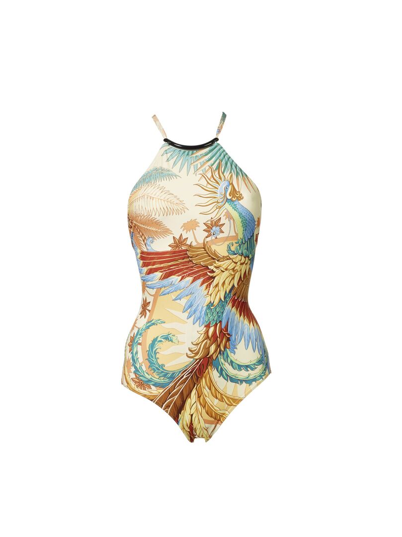 Drei Motive aktueller Carées finden sich in der Bademode wieder: Passend zum Sommer erscheint das Motiv "Mythiques Phoenix" als Einteiler und als Bikini in warmen und frischen Sommerfarben. Die Bademode ziert außerdem Phönix, ein gewaltiger Feuervogel, dessen Element die Sonne und die Hitze ist. Auch die russische und polnische Volkskunst ist in den Entwürfen von Christophe Lemaire wiederzufinden. Der Badeanzug "Folklore d'Henri d'Origny" ist eine kleine Hommage an den Osten: Von Lederriemen und Flechtwerk eingefasste Formen in leuchtenden Farben umranden dezent den trägerlosen Badeanzug mit vielfärbigen Mustern.