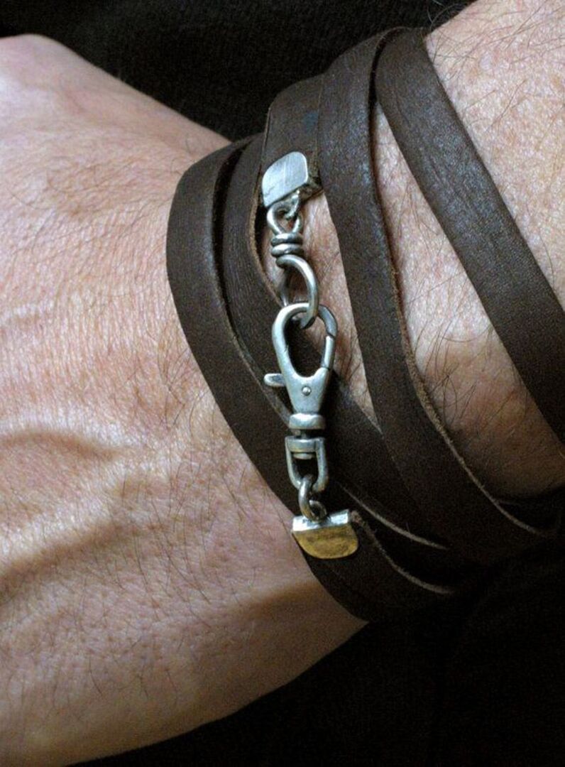 Dunkelbraunes Lederarmband mit Karabiner-Verschluss von etsy.com