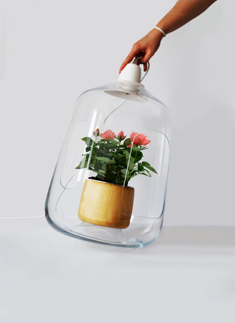 Die Lampe "Milo" dient nicht nur als Lichtquelle, sondern ist gleichzeitig auch ein kleines Gewächshaus, welches sowohl einem großen Blumentopf, als auch mehreren kleinen genug Platz bietet. Durch zwei Öffnungen kann die Luft zirkulieren und ein dem Tageslicht sehr ähnliches LED Licht mit einer Farbtemperatur von 4000 Kelvin beleuchtet die Pflanze, ohne dass sie dabei überhitzt und Schaden nimmt. Sehr stylish und clever durchdacht – so fühlt sich die heimische Flora auch in den dunkelsten Ecken wohl.