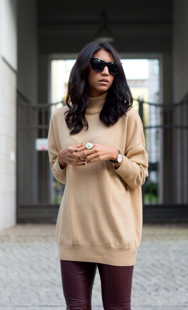 - Tipp 1: "Unten sollte man immer figurbetonte Stücke tragen, so wirkt der Look feminin und elegant", verrät Kayla. Eine ihrer Lieblings-Kombis besteht aus hautengen Lederleggings und einem camelfarbigen Pullover. Weite Oberteile kann man ebenso auch zum Pencil Skirt tragen, so verleiht man dem klassischen Mode-Basic einen lässigen Touch.
