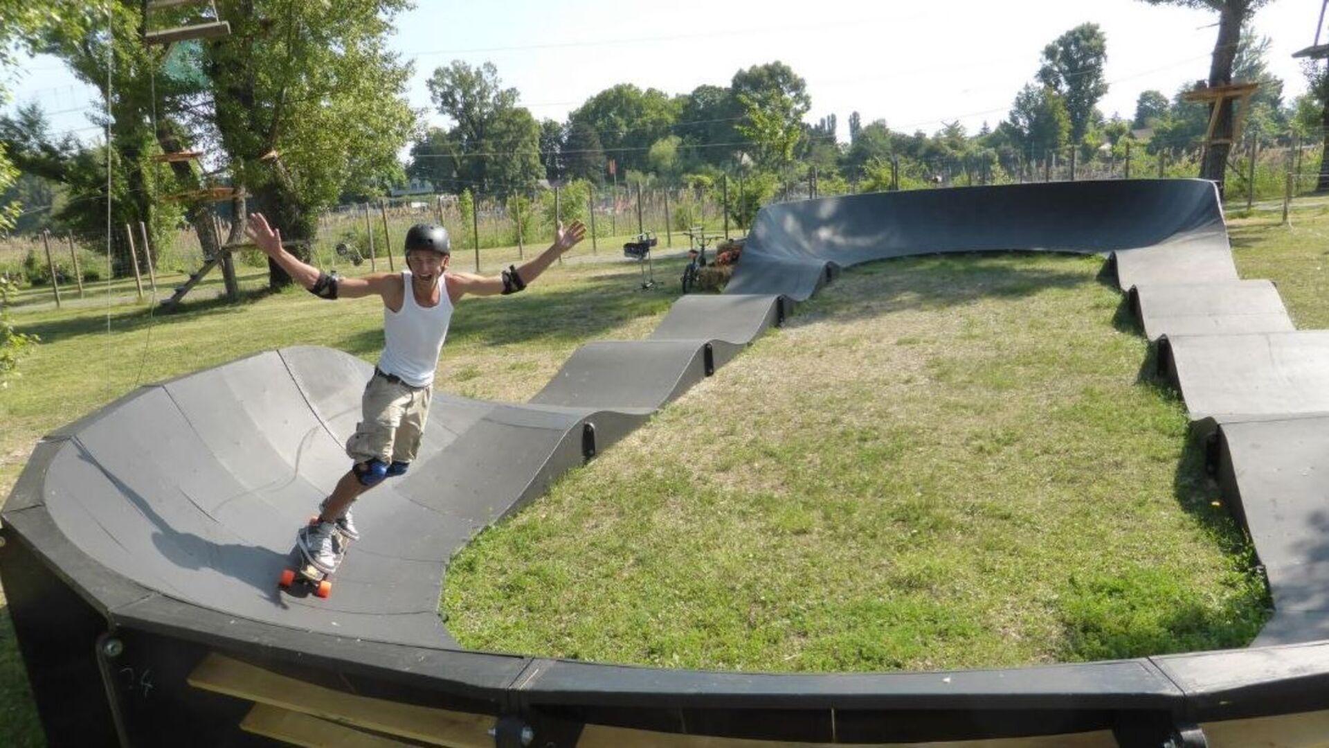 Adrenalin-Junkies aufgepasst! Ein neuer Bewegungstrend erobert die Hauptstadt: Pumptrack ist eine als Rundkurs angelegte Wellenbahn mit Steilkurven, die mit Fahrrad, Skateboard, Longboard oder Roller befahren werden kann. Die Vorwärtsbewegung erfolgt dabei ohne Pedalantrieb und ohne antauchen mit dem Fuß, denn das Ziel ist es durch Ziehen und Drücken mit Beinen und Armen Schwung zu generieren. Klingt schwierig, die Lernkurve geht aber schnell nach oben, und schon nach einigen Proberunden werden die ersten Erfolge erzielt.